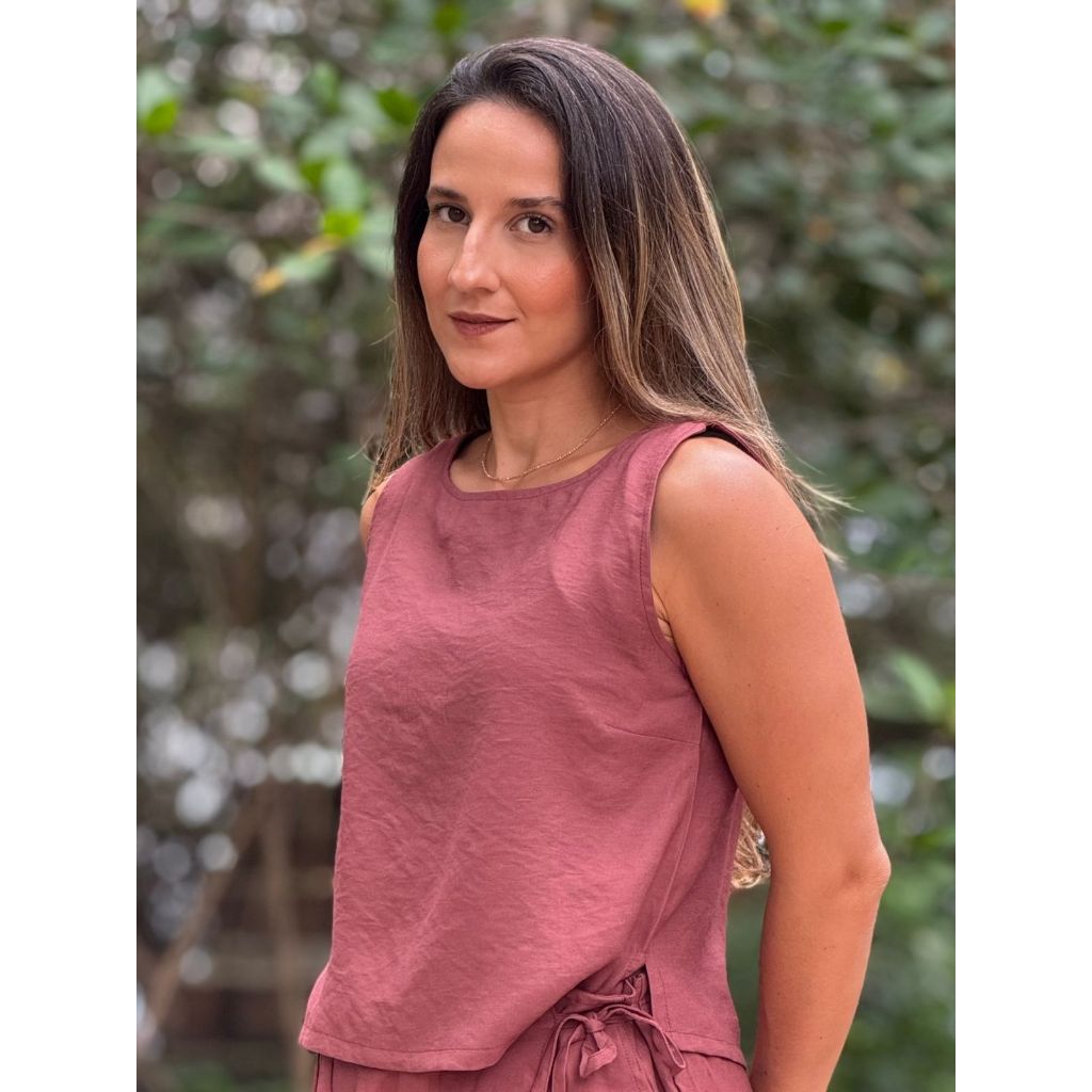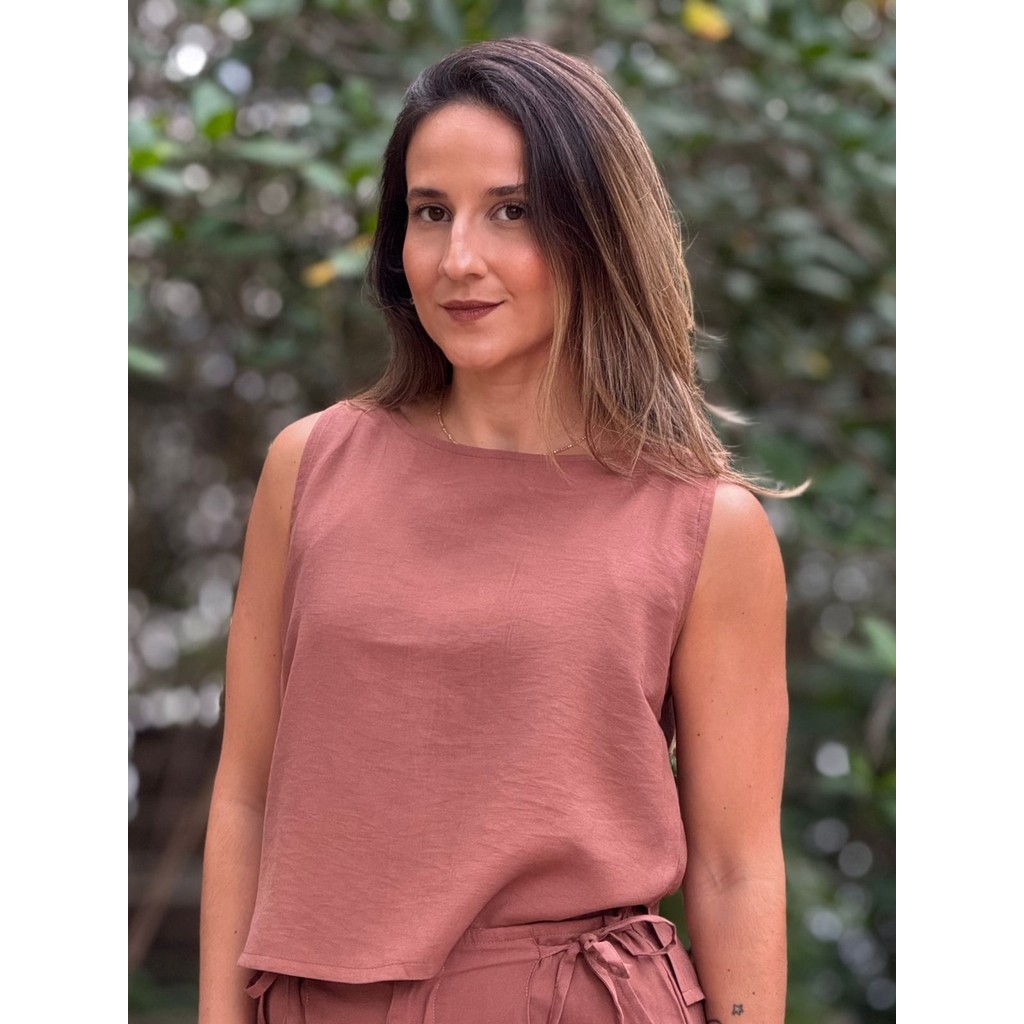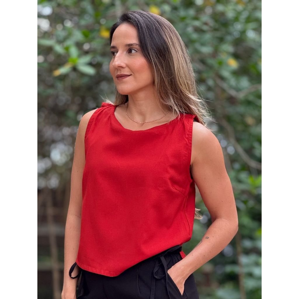 Blusa Feminina Estilo Regata Viet Type Com Botões Nas Costas de Viscose Básica Estilosa e Lisa
