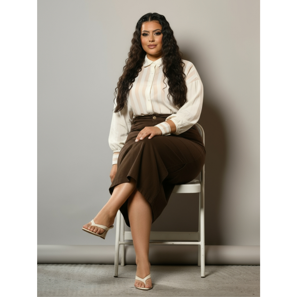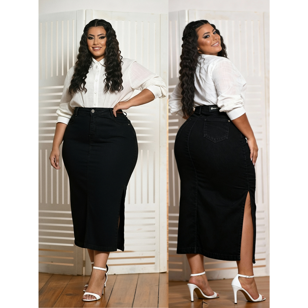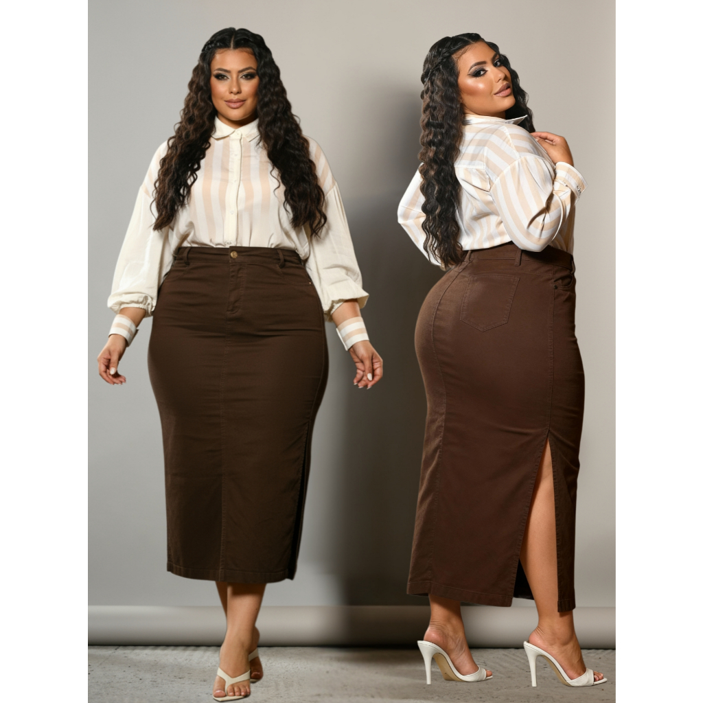 Saia Longa Recorte Lateral Cores Elegantes Lavine Moda Evangélica