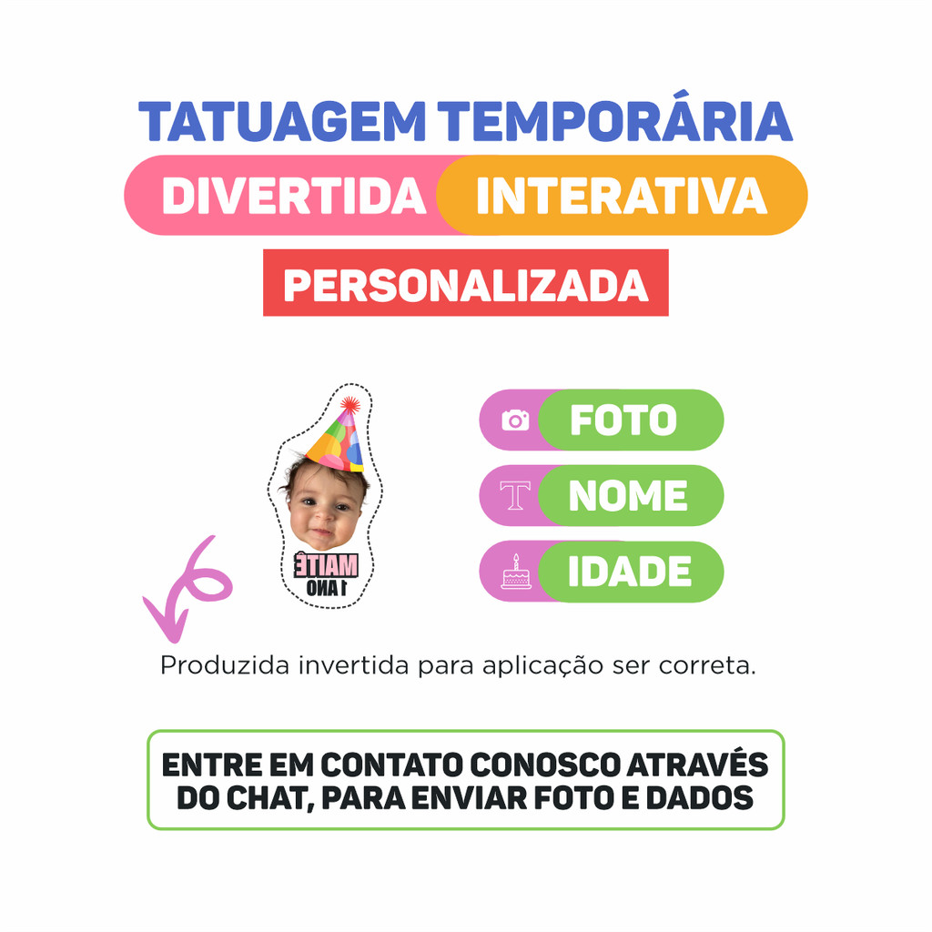 39 Tatuagem Temporária Personalizada de Aniversário Infantil - Tatuagem Mania