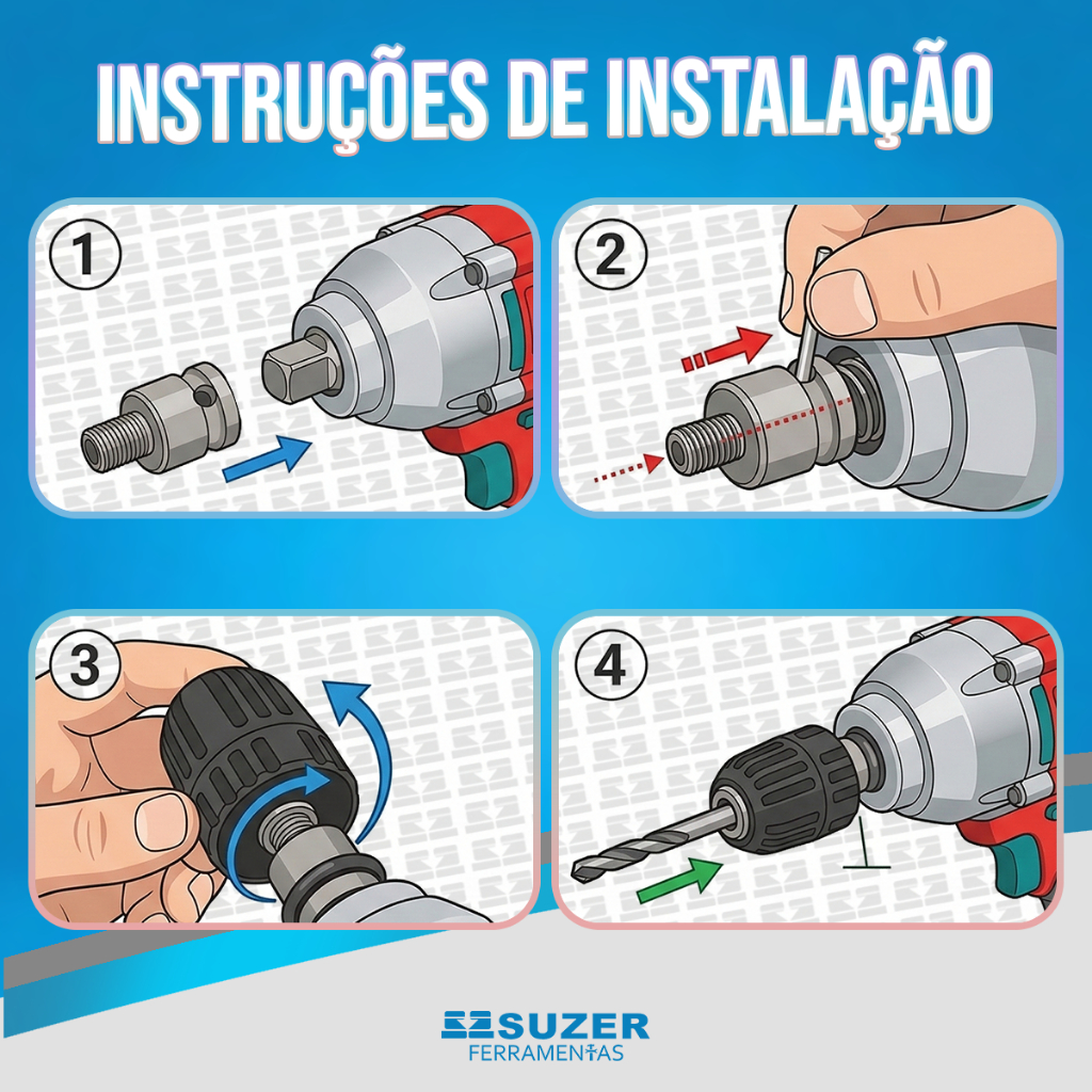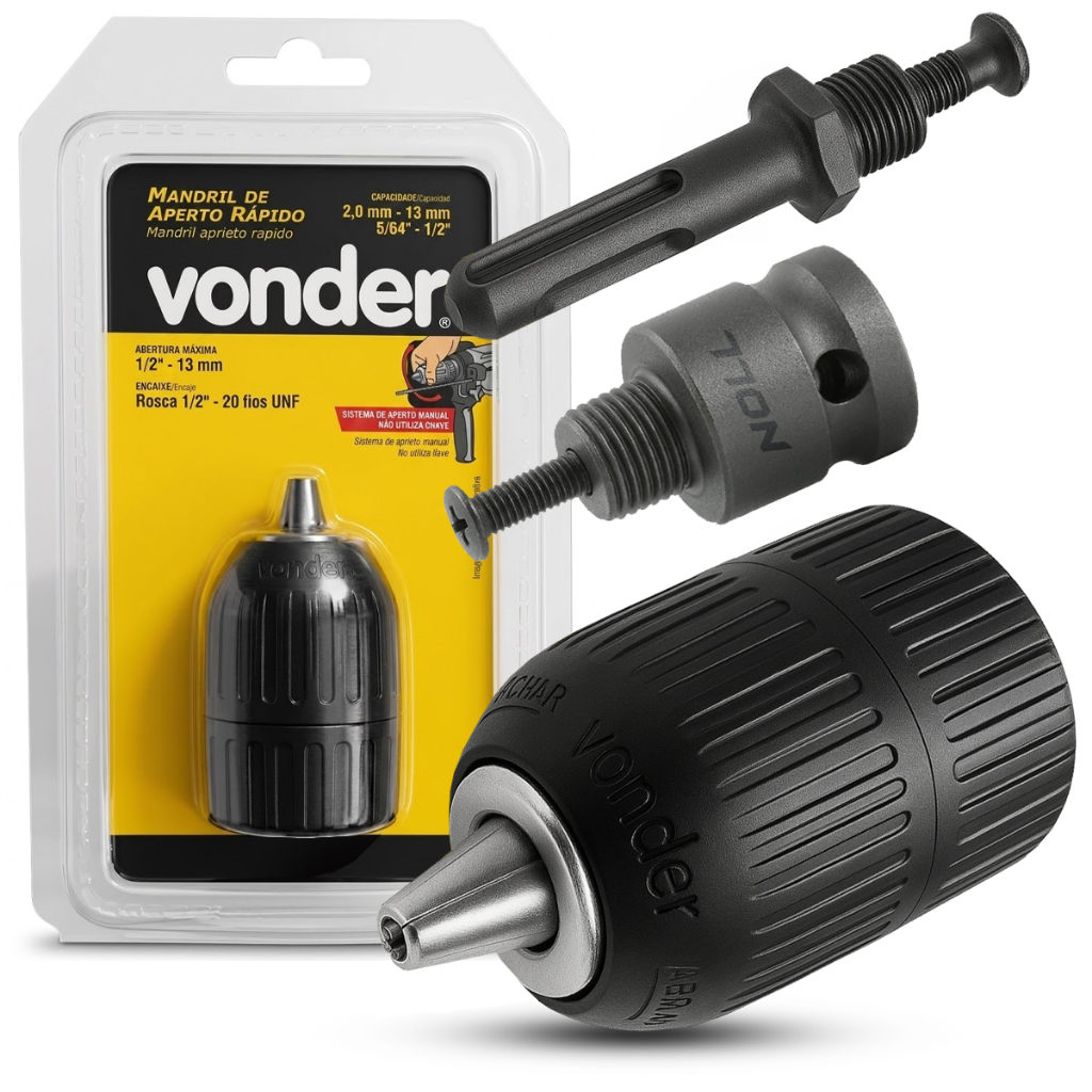 Kit Mandril de Aperto Rápido + Adaptadores a Sua Escolha Sds Plus de 1/2 Ou de Impacto 1/2 Quadrado