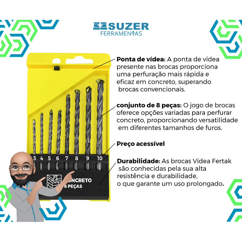 Jogo De 8 Brocas Widea / Videa Furadeira 3,0 A 10mm