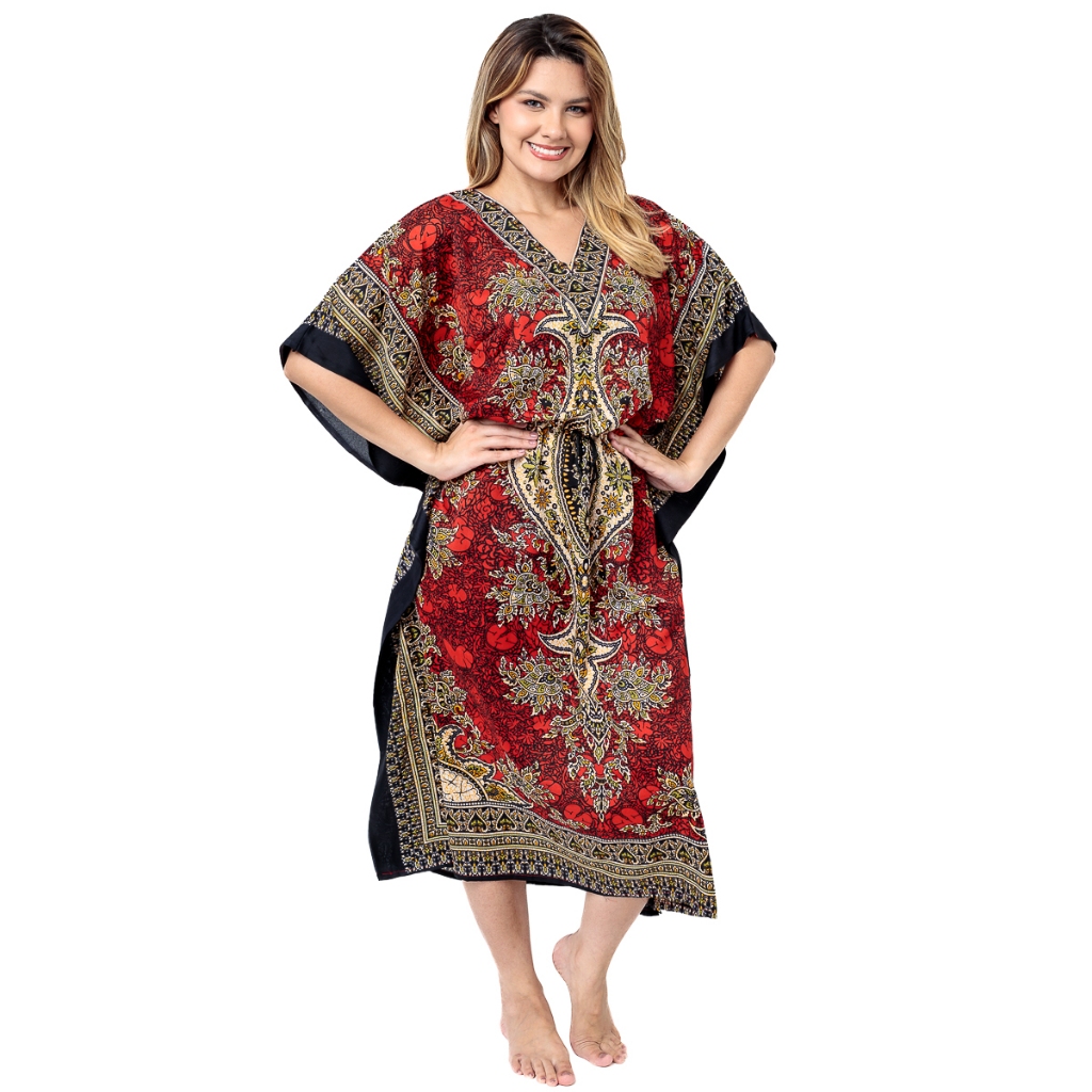Vestido Kaftan Longa Feminino Moda Hippie Boho Ajustável Plus Size
