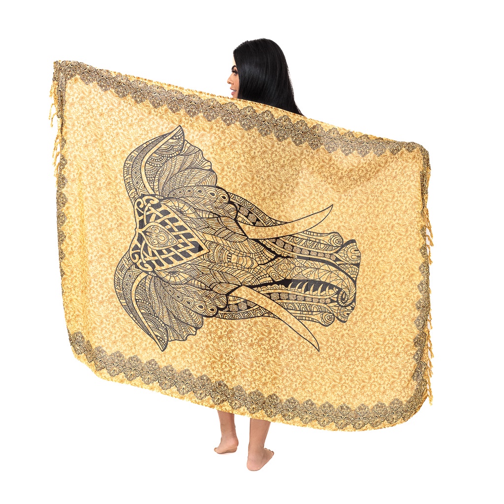 Canga De Praia Viscose Elefante Preto e Bege Grande Macia Alta Qualidade