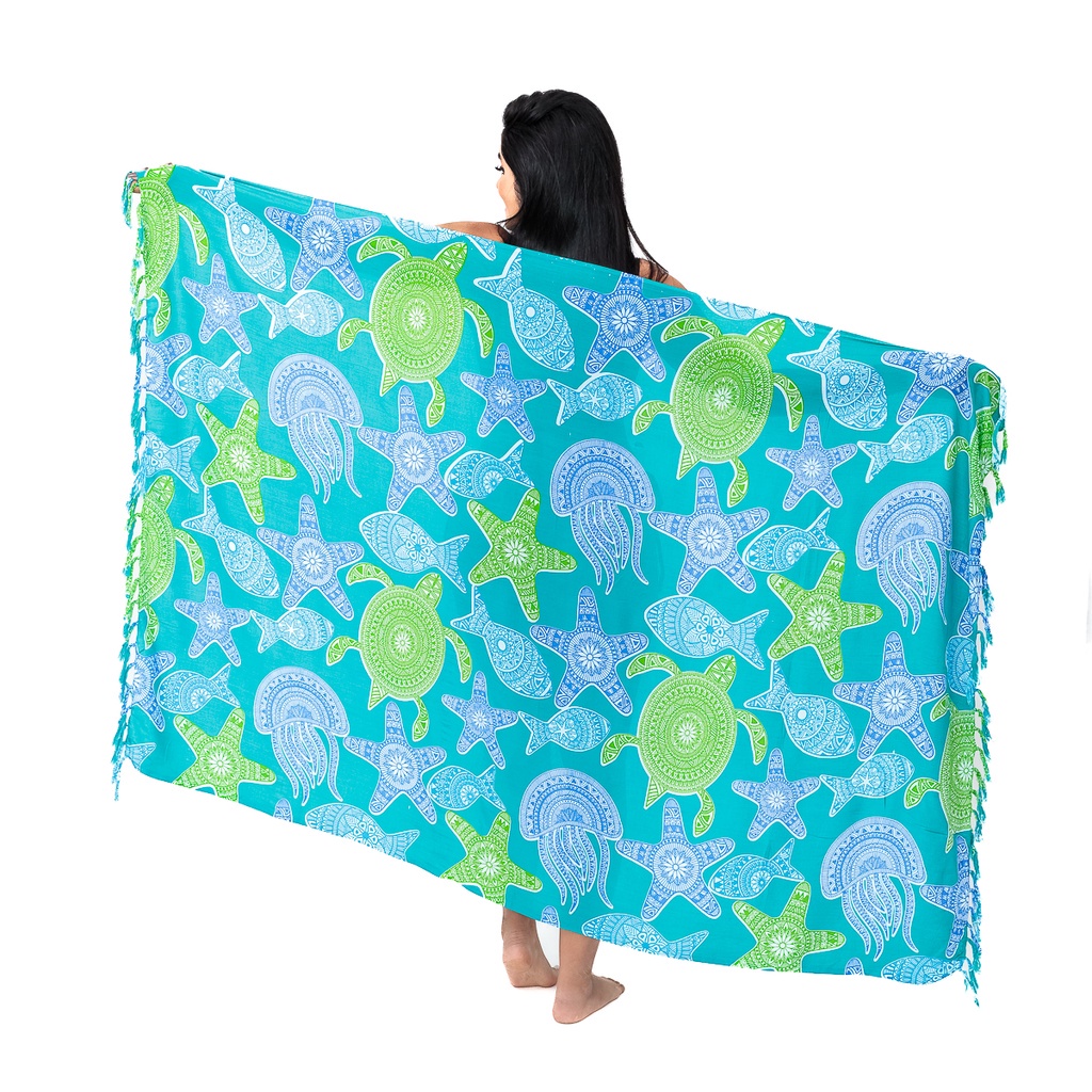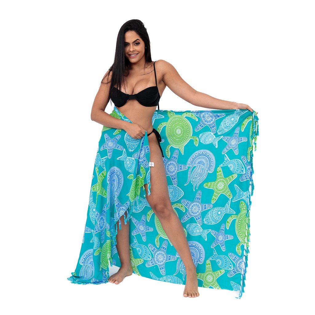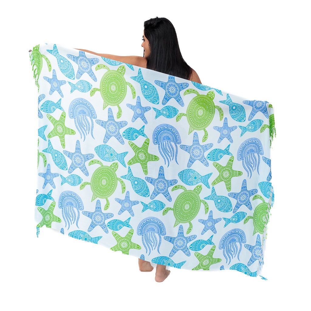 Canga de Praia em Viscose Fundo do Mar Grande