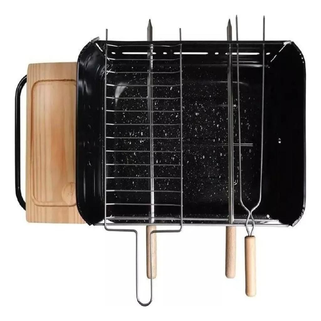 Churrasqueira California Com Rodinha Grelha + 3 Espetos Com Bacia Esmaltada Mor Alta Qualidade