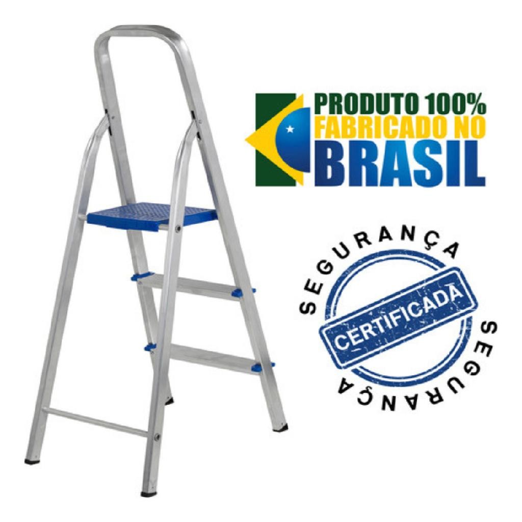 Escada De Alumínio Mor Doméstica 3 Degraus Reforçada Resistente MOR
