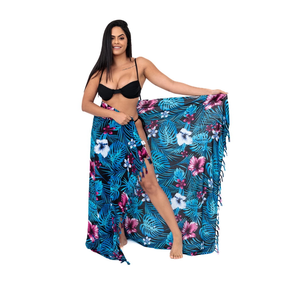 Canga de Praia Viscose Grande Macia Floral Flor Colorida