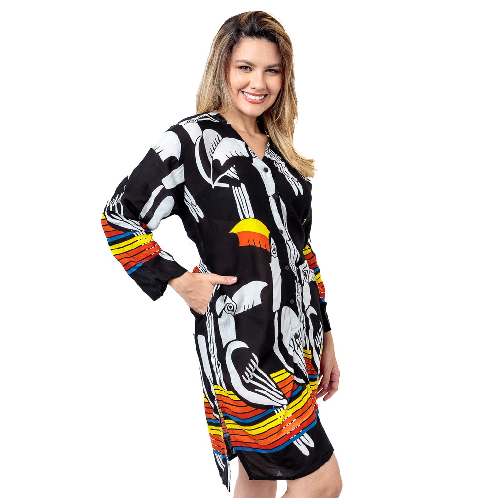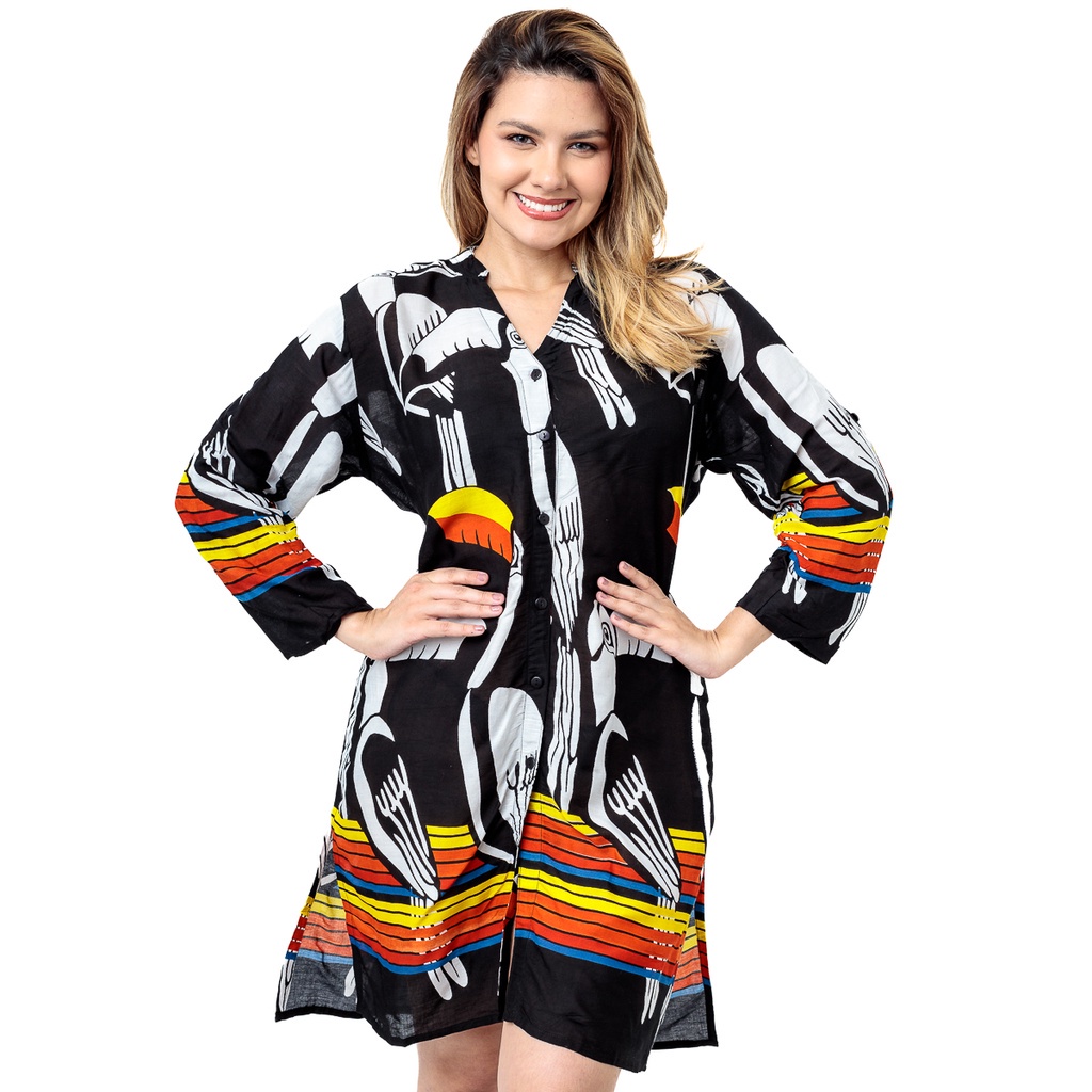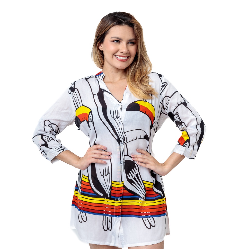 Blusa Feminina Saida de Praia Indiana Bata Boho Hippie Casual