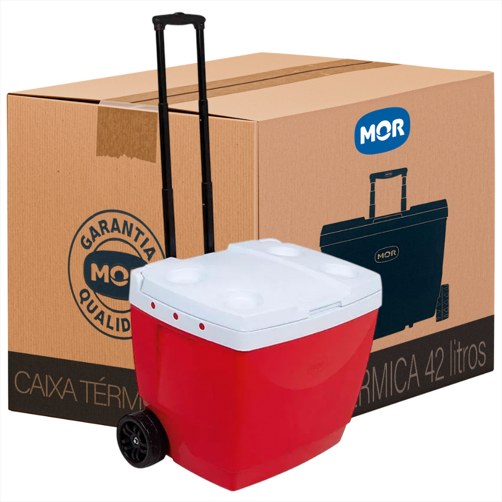Caixa Térmica 42L Com Rodinha Cooler Grande Até 56 Latinhas Azul Vermelho Preto