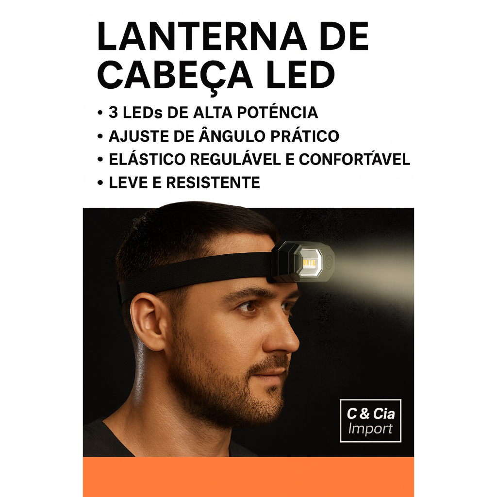 Lanterna De Cabeça Tática Potente 3 Leds 2135° e 2 Modos Iluminção