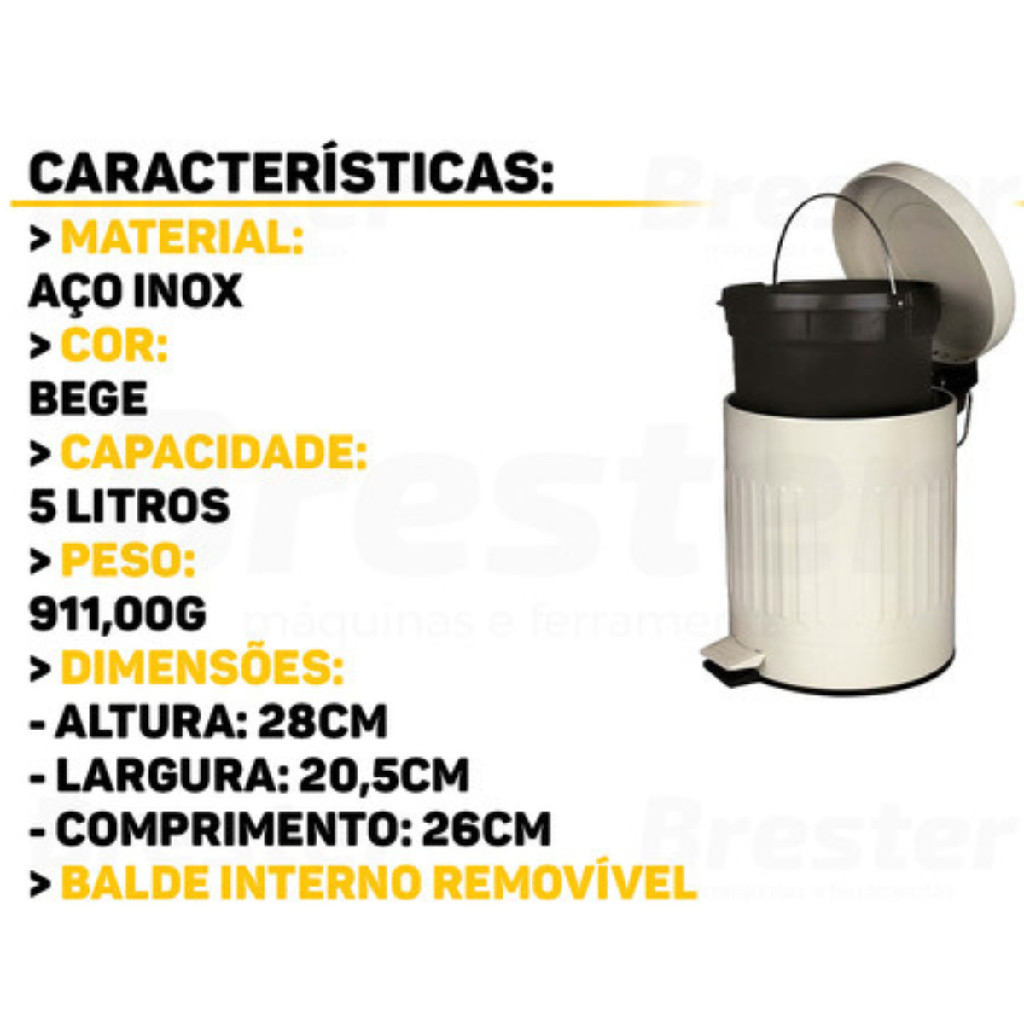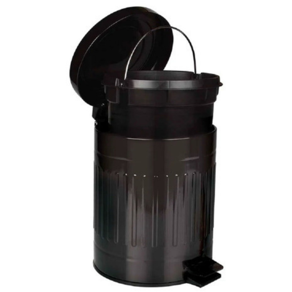 Lixeira Retrô Bege e Preta 5L Inox Cozinha Banheiro Escritório