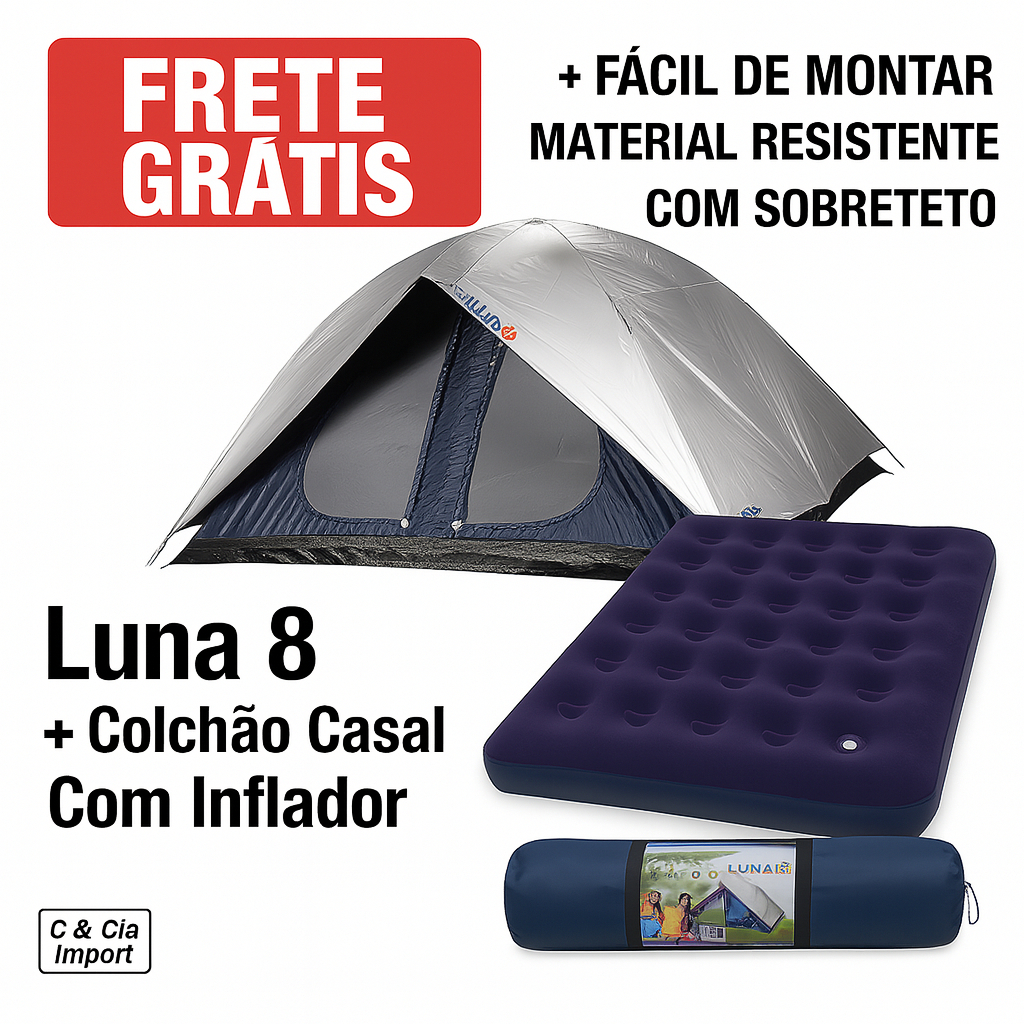 Barraca 8 Lugares Luna + Colchão Casal + Bomba De Pé Camping