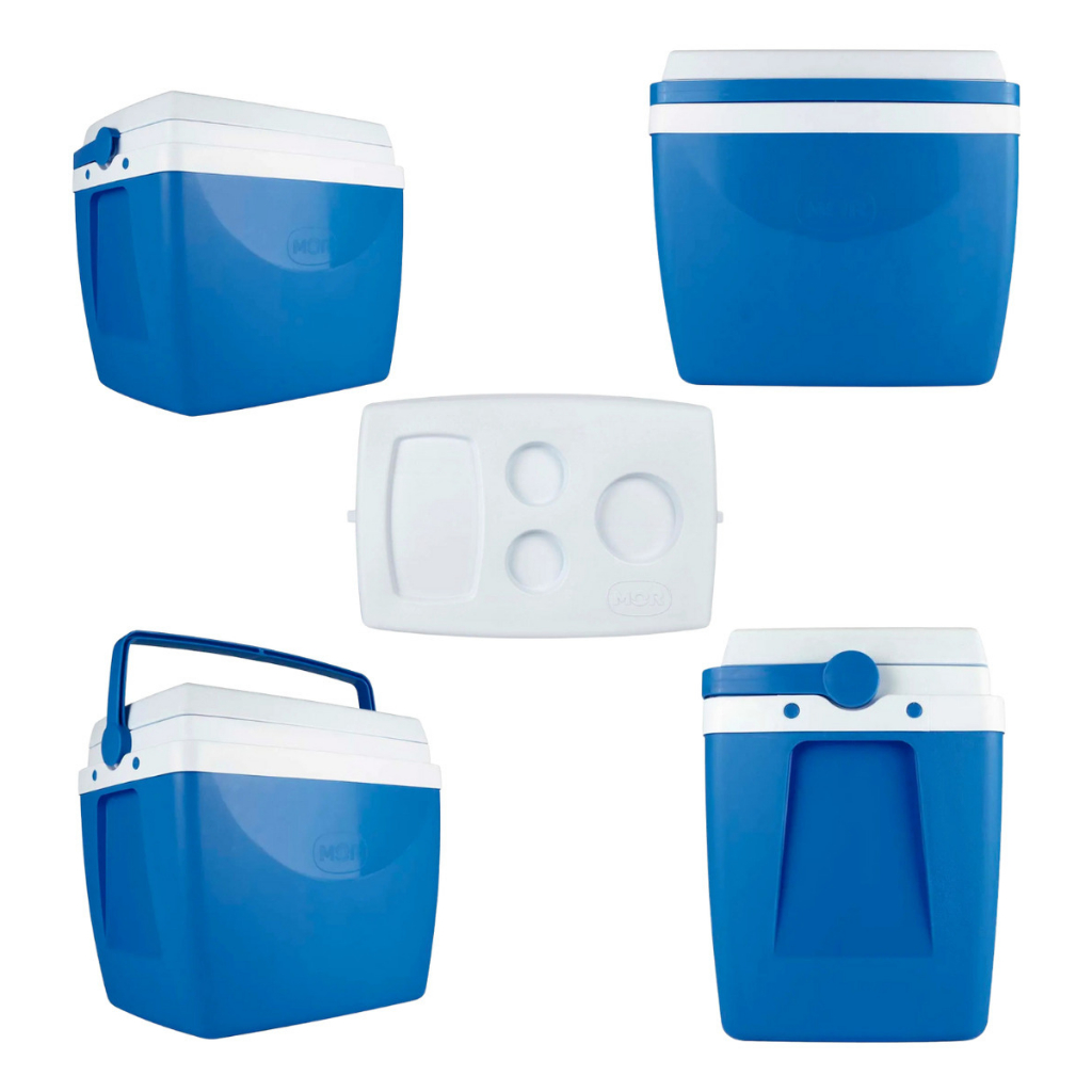 Caixa Térmica Cooler Com Alça 18L Litros Azul Vermelho Preto Mor 24 Latinhas Com Porta Copos