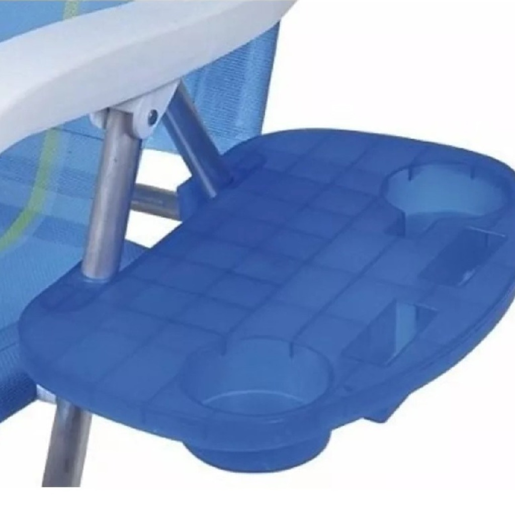 Mesa Portátil Azul Para Cadeira De Praia Bandeja Porta Copo Cerveja e Refrigerante