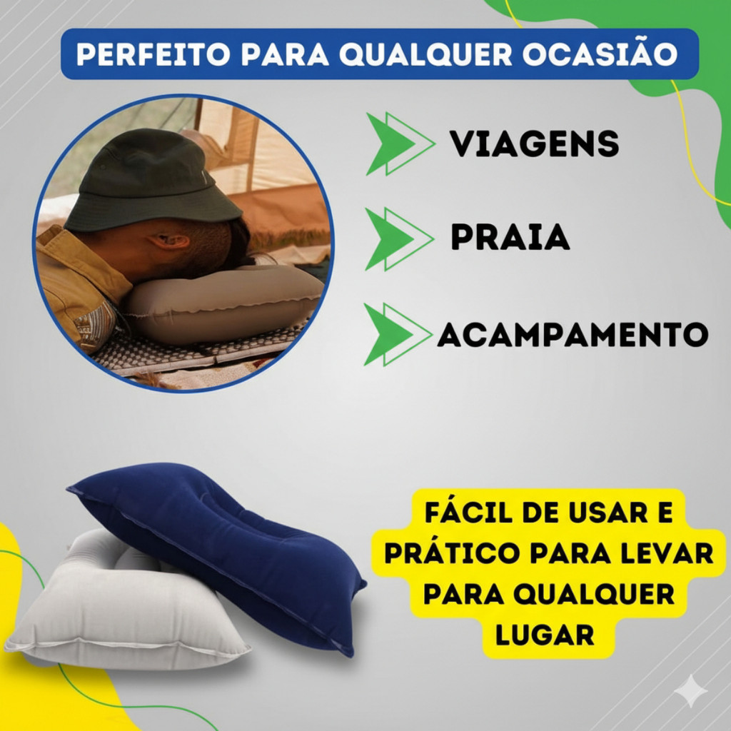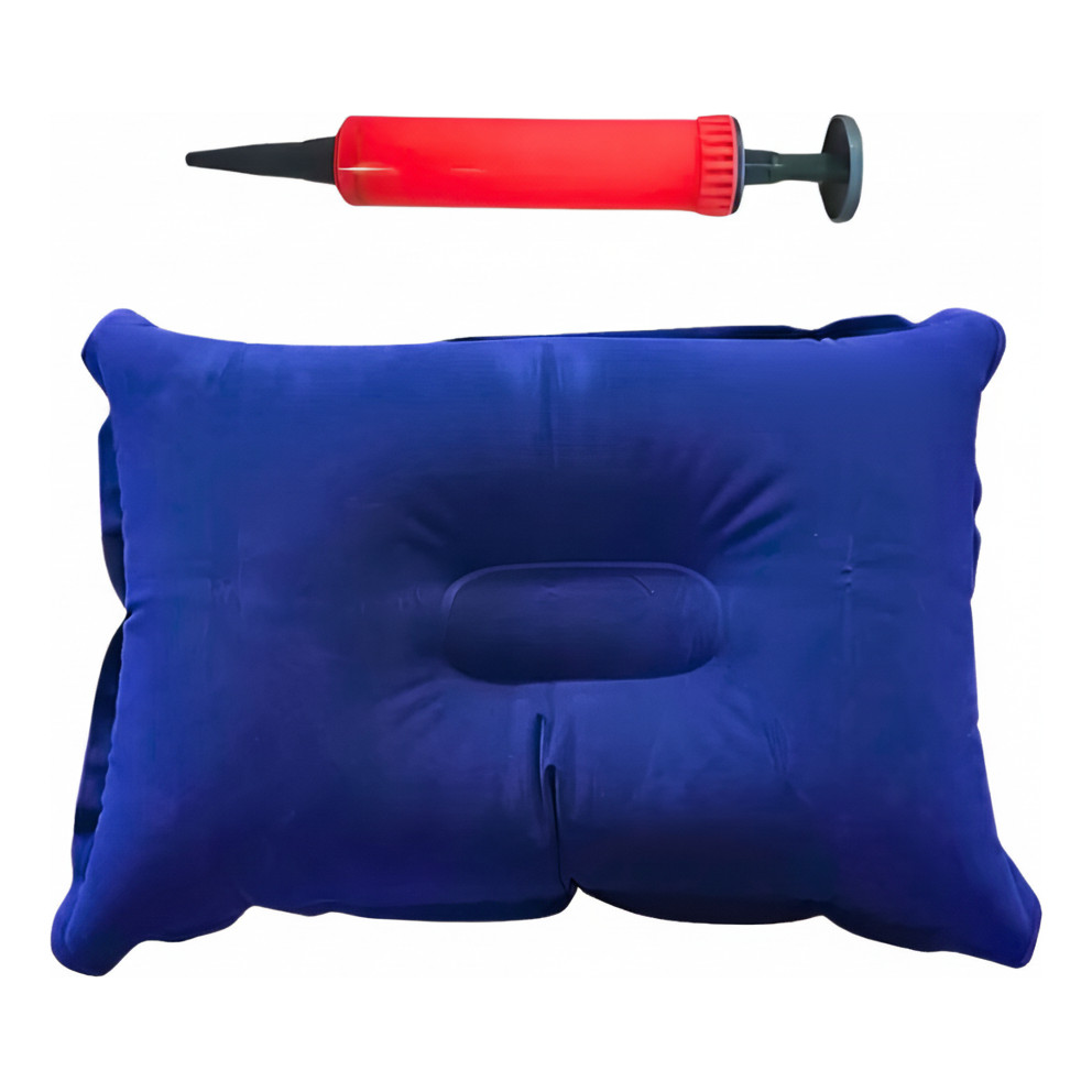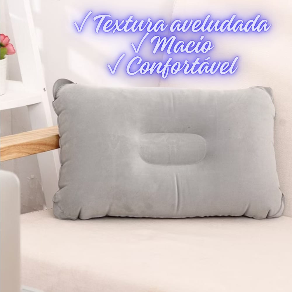 Travesseiro Inflável + Bomba Portátil Camping Viagem 50x35cm
