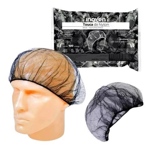 Touca Nylon Redinha Protetora Capilar Cozinha Preta Pacote 25 unidades
