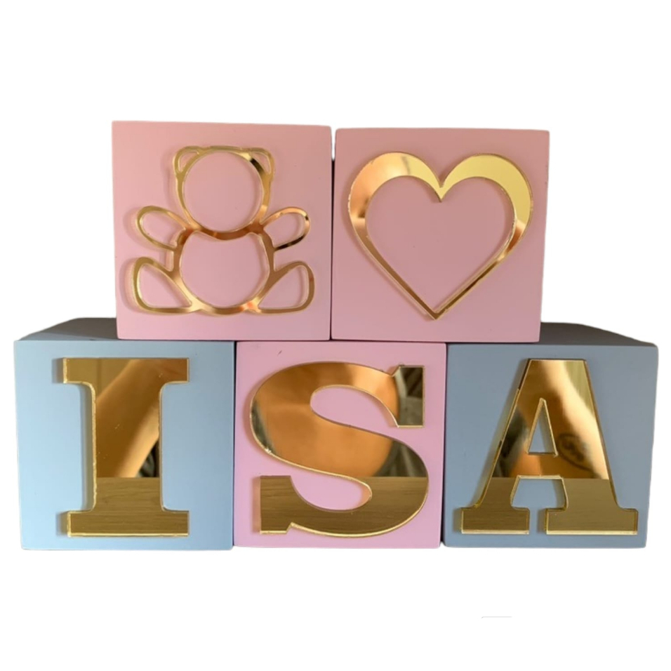 Cubos Decorativos com Letras Espelhadas em acrílico decoração bebê quarto