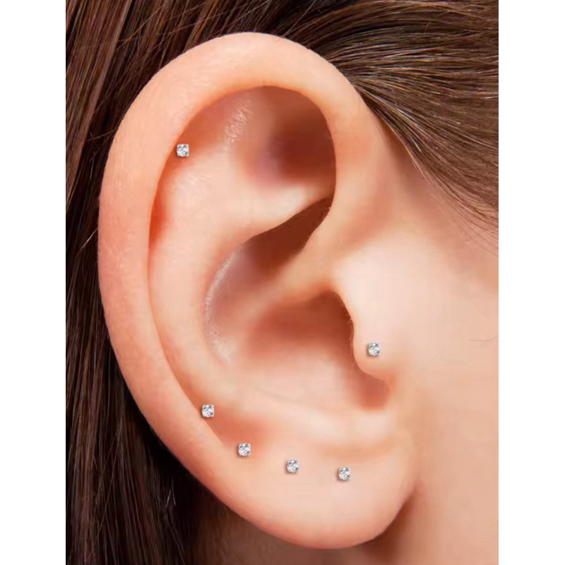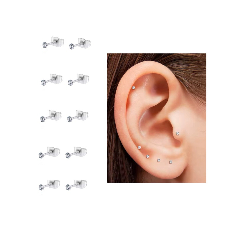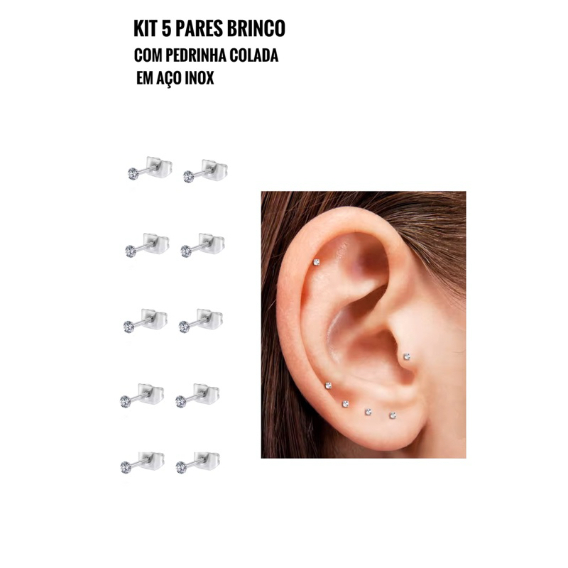 kit 5 pares Brinco ponto de luz pedra zircônia em aço inox antialérgico