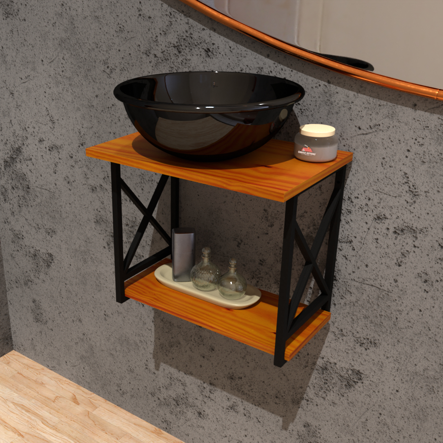 Gabinete Estilo Industrial + Cuba Preta Sobreposta