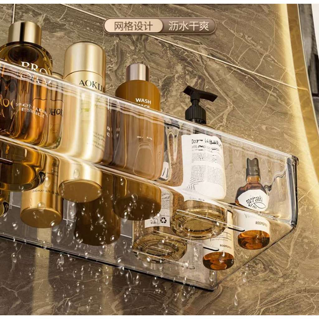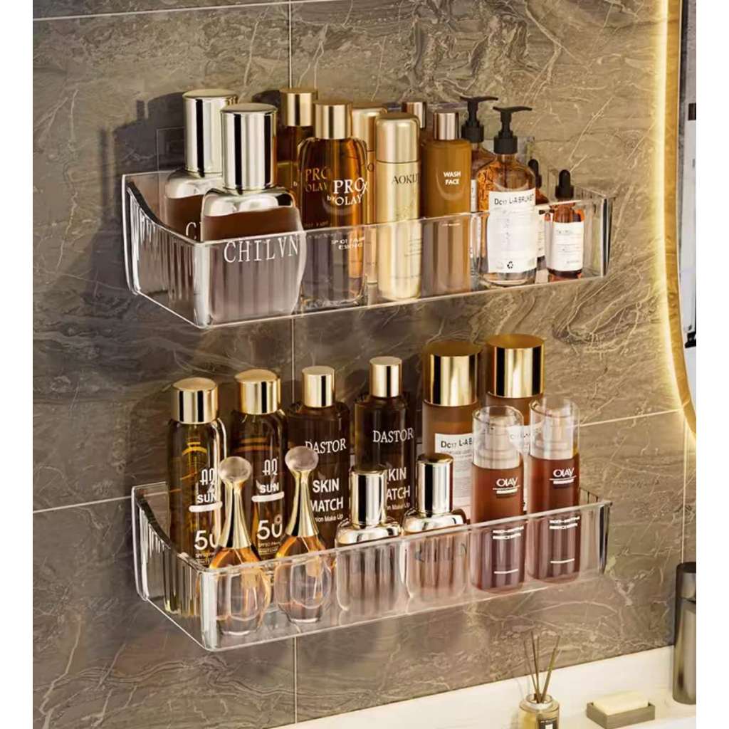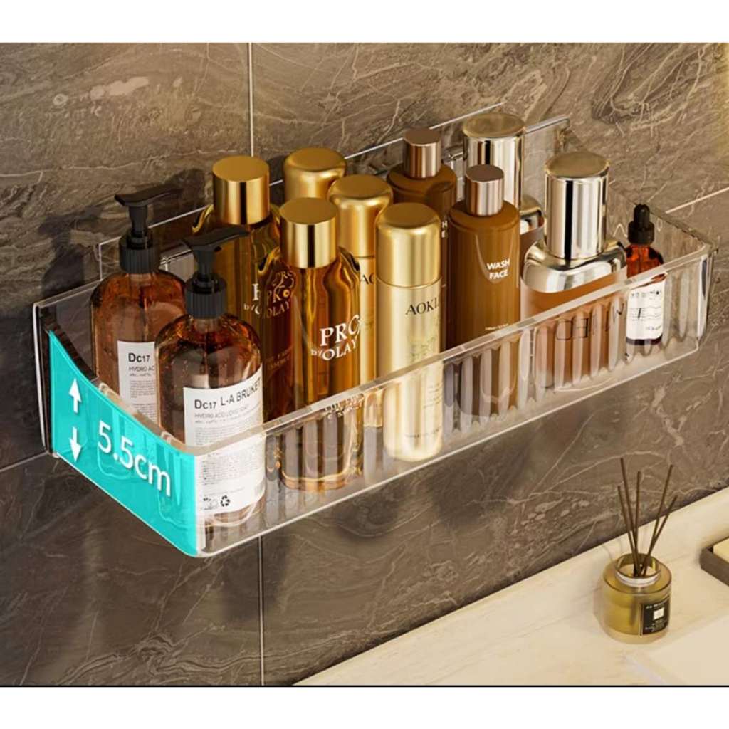 Suporte De Shampoo Prateleiras De Banheiro Sem Furo Acrilico linhado transparente-0128