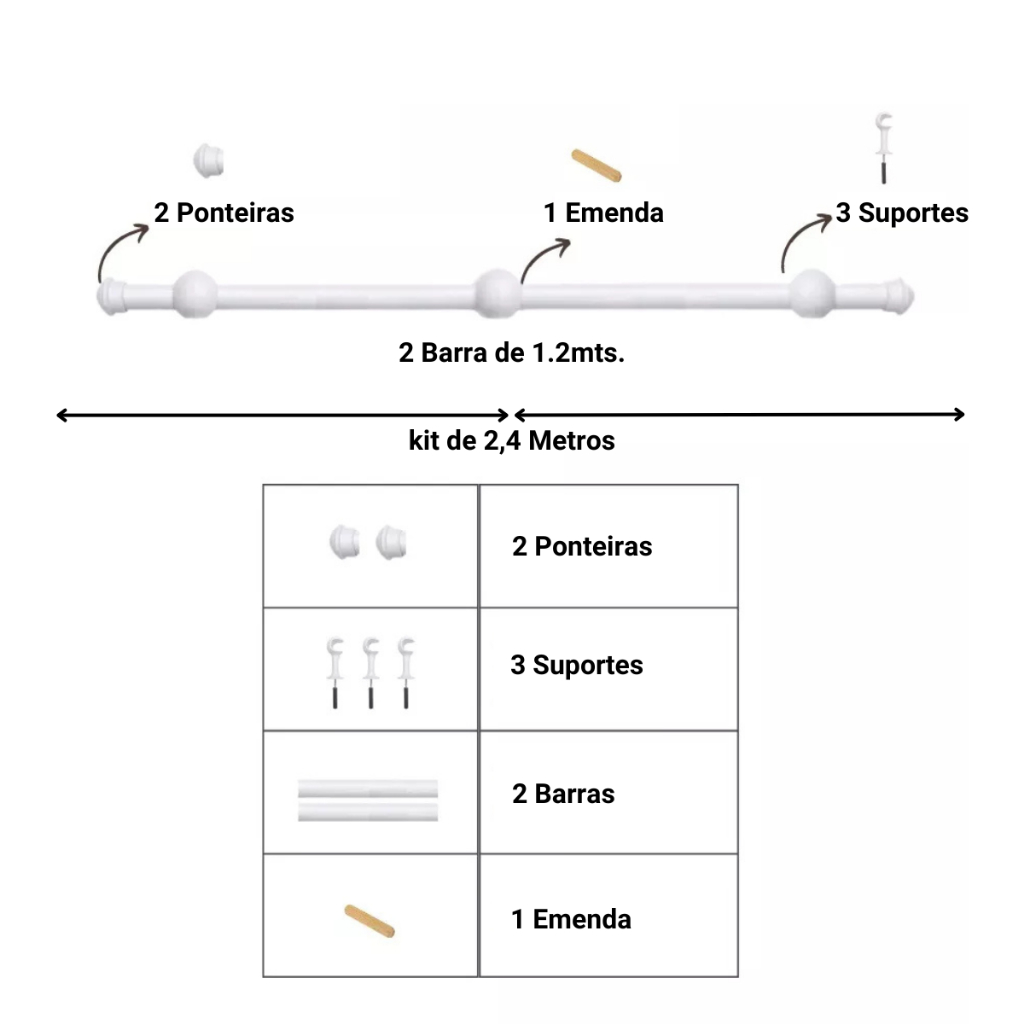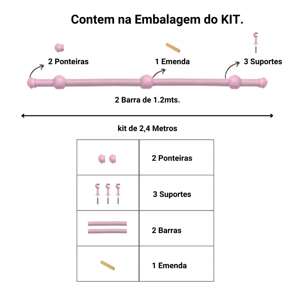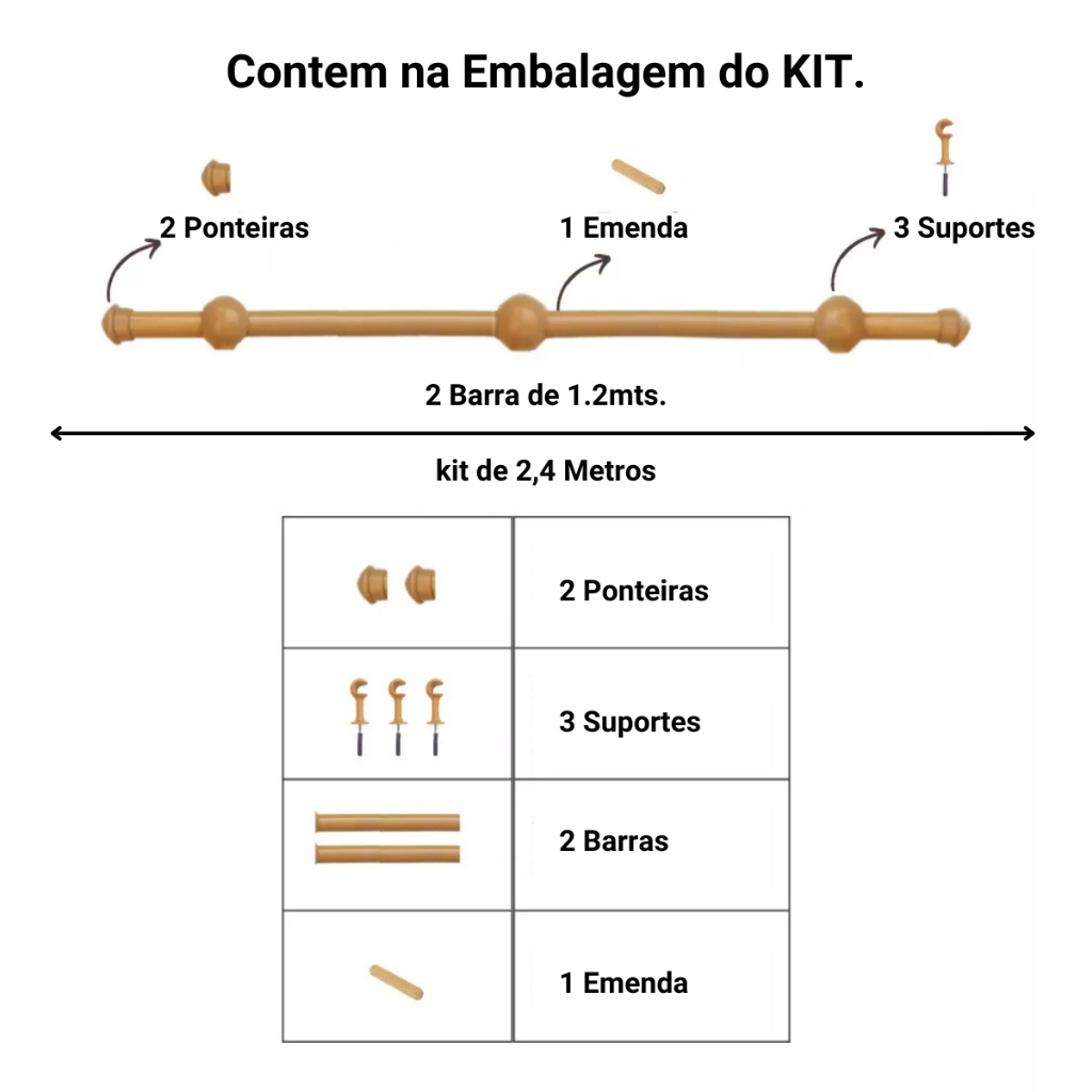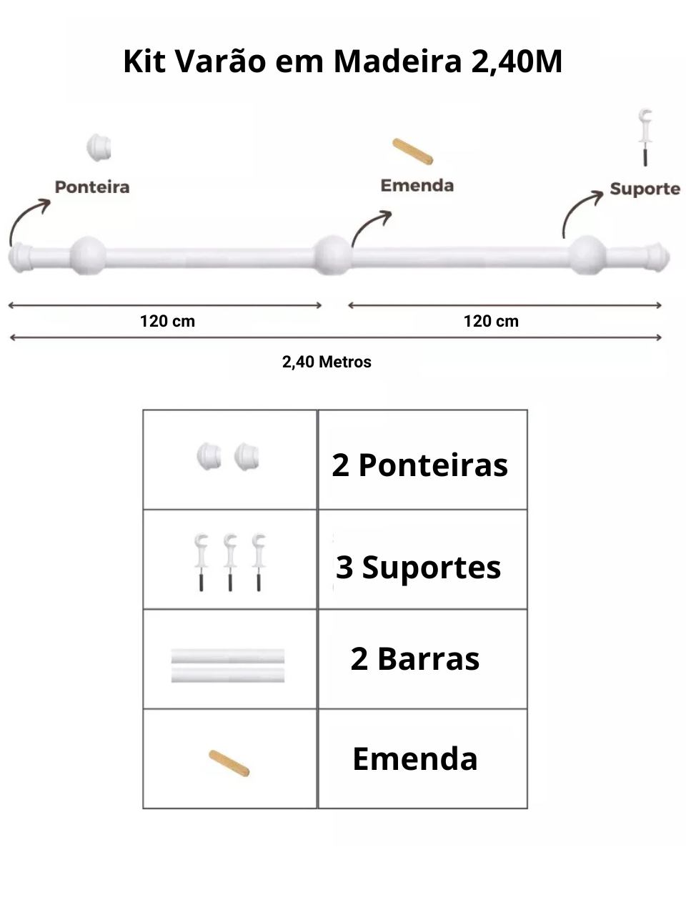 Varão de Madeira com 2,40 metros 19mm várias cores.