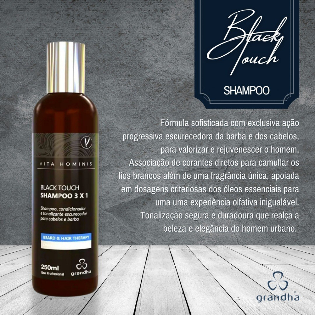 Shampoo Tonalizante Escurecedor Vita Hominis Black Touch 3x1 250ml