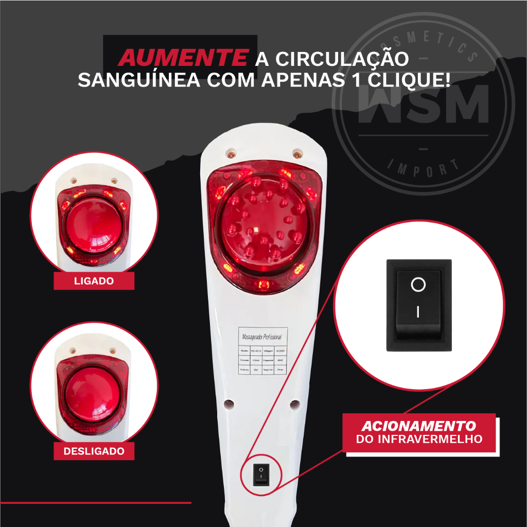 Aparelho Massageador Corporal Infravermelho Elétrico Portátil Profissional Vibratório Branco 110v ou 220v