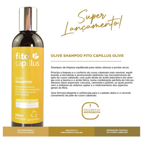 Kit Grandha Fito Capillus Olive - Para Pontas Secas e Raizes Oleosas Estimulando Conforto e Equilibrio da Microbiota