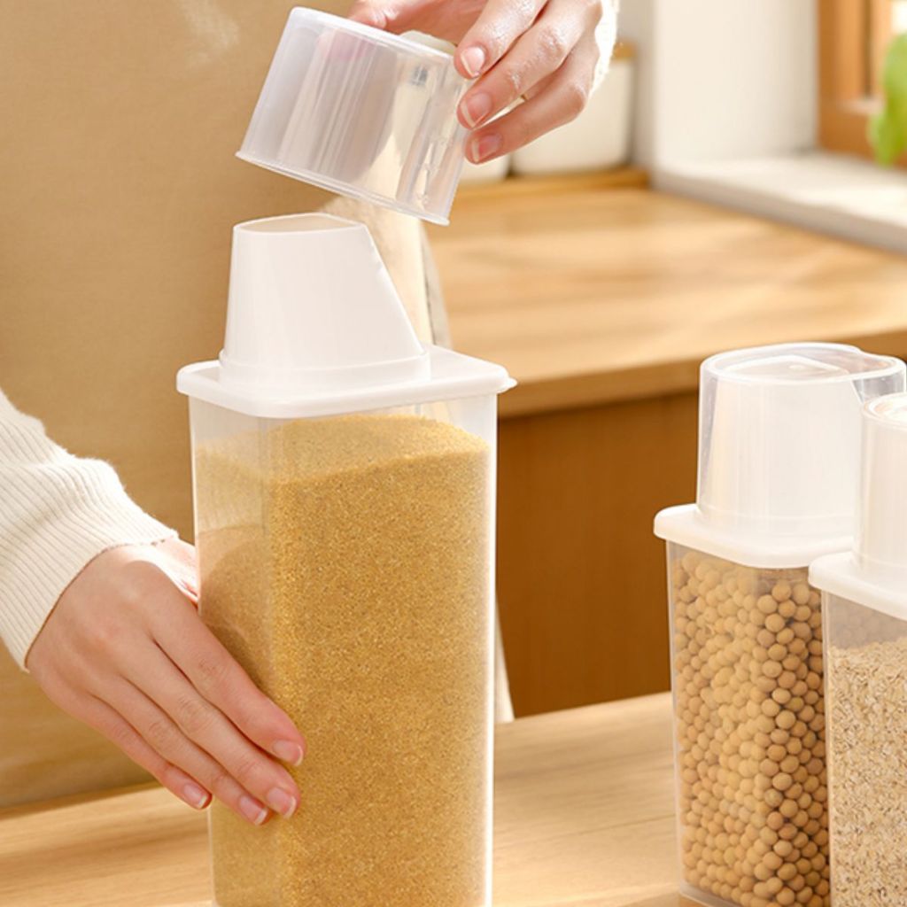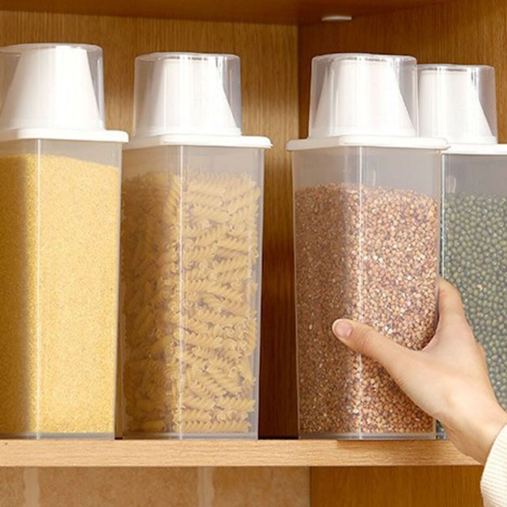 KIT 5 Potes De 1200ML Hermeticos De Plástico Com Tampa Medidora Para Armazenamento De Alimentos