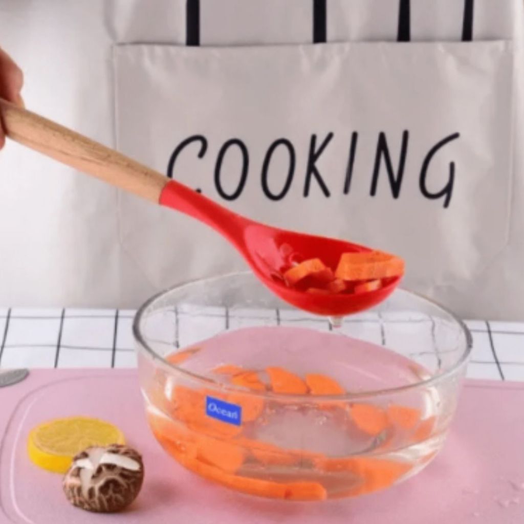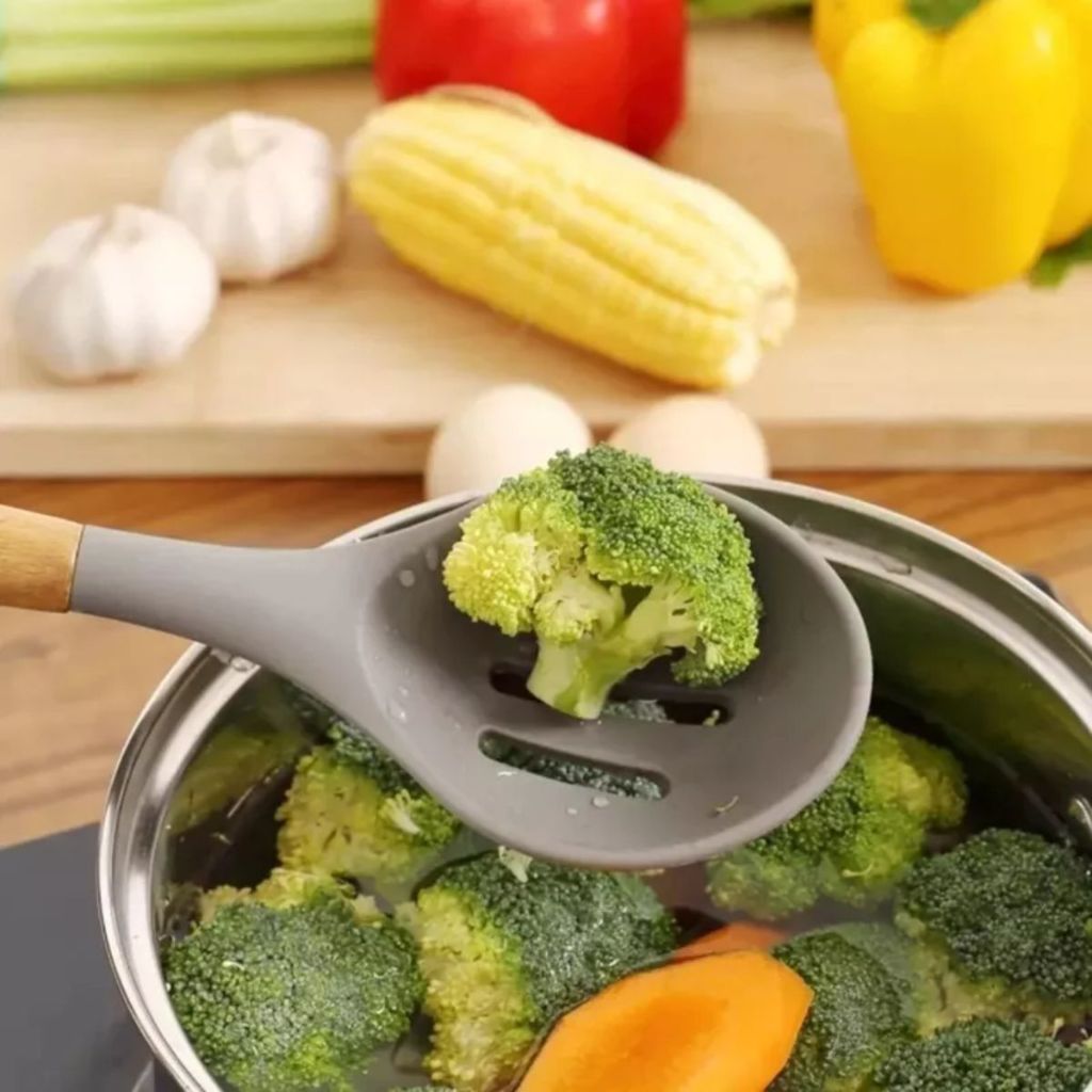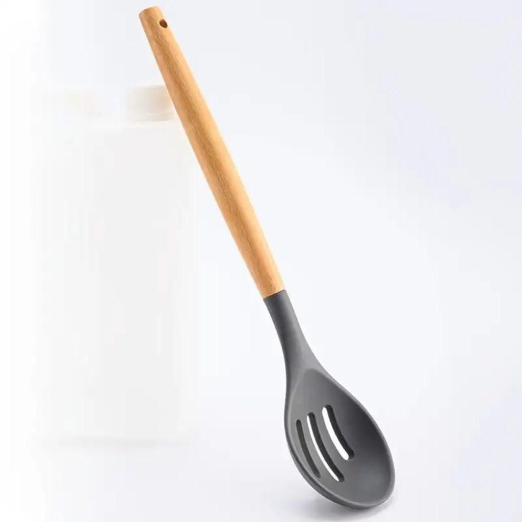 Colher Vazada De Silicone Cabo De Madeira Utensílios de Cozinha