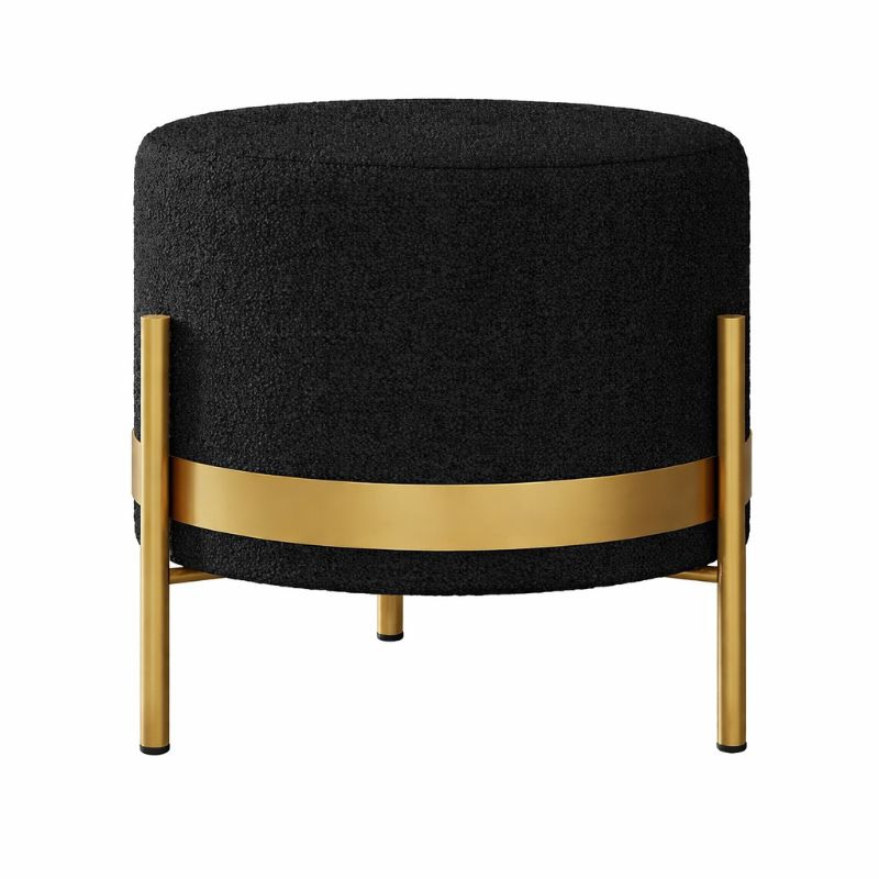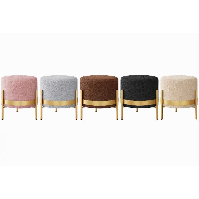 Puff Decorativo Sala , quarto Jade Redondo com base metálica Dourada