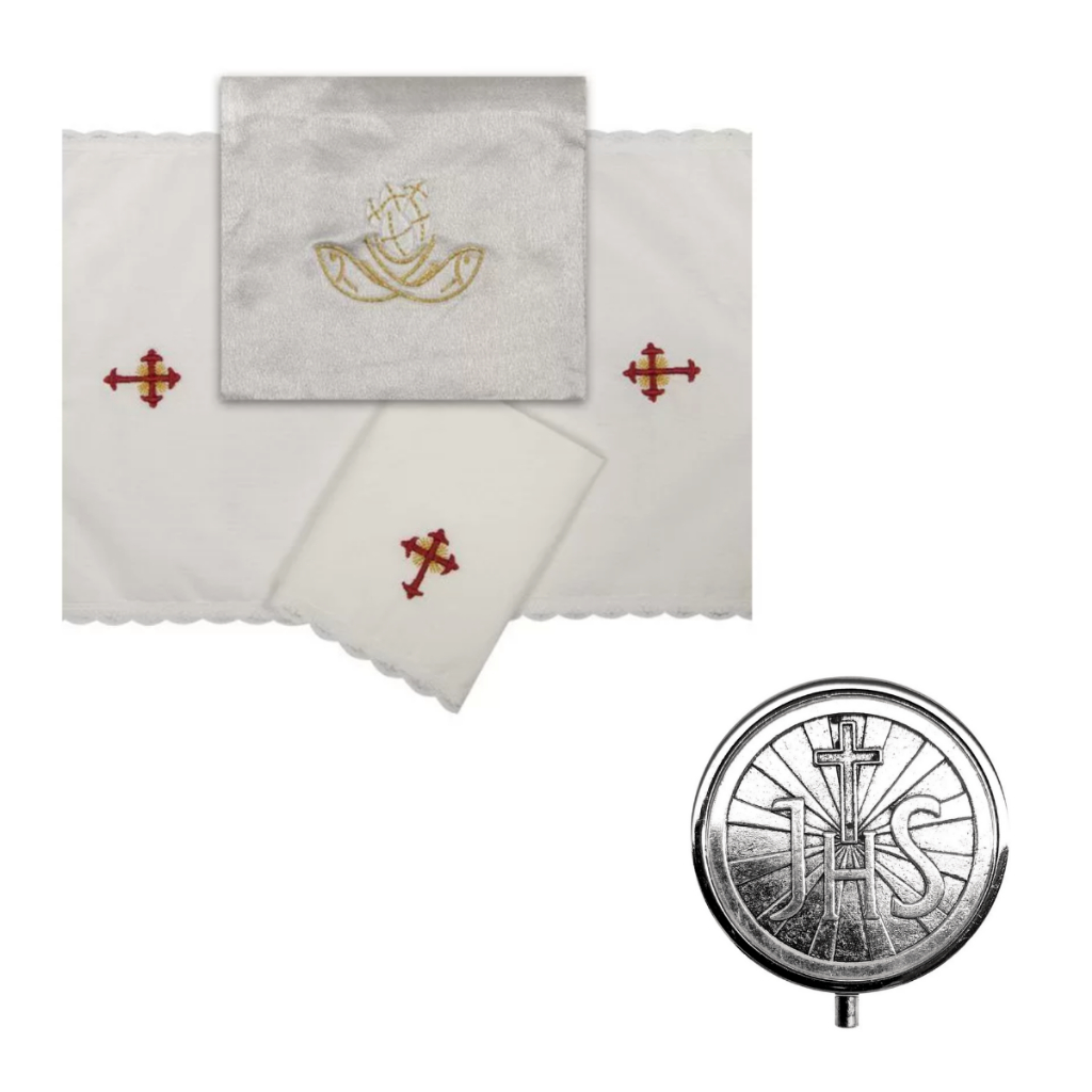 Kit Bolsa Viático + Teca Porta Hóstia Metal - 4,7cm X 1,7cm