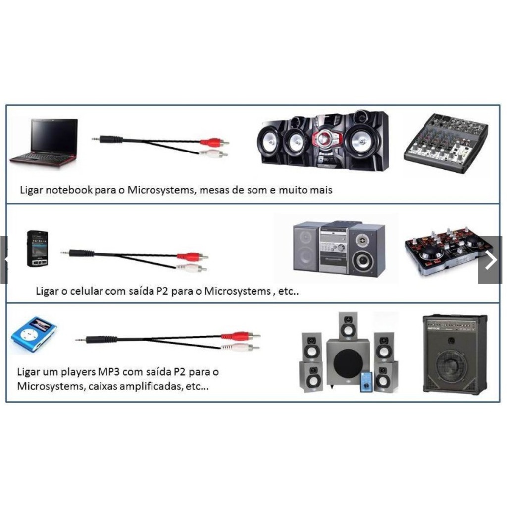 Cabo Auxiliar P2 Macho X Rca Macho Audio 1,5m P/ Som / Tv / Home Theater Audio Video
