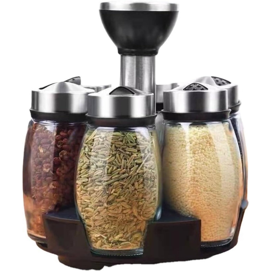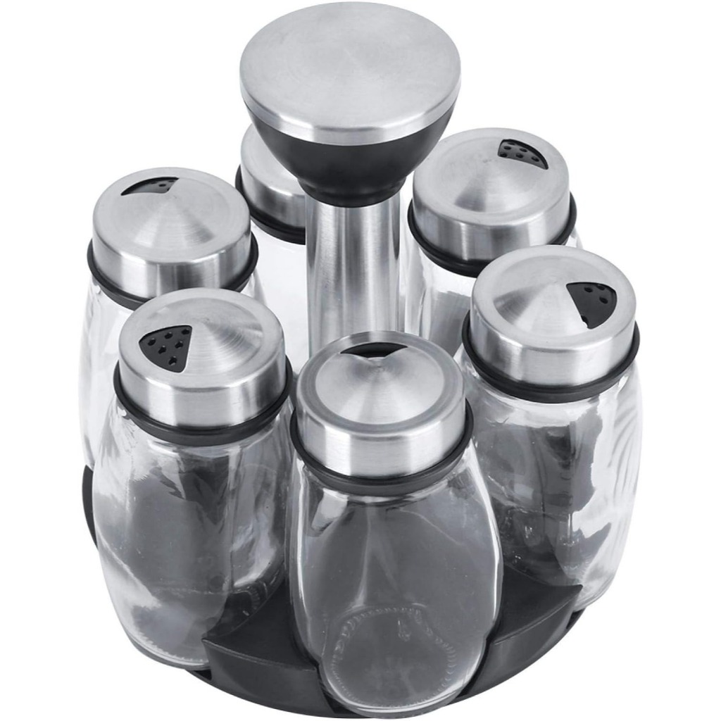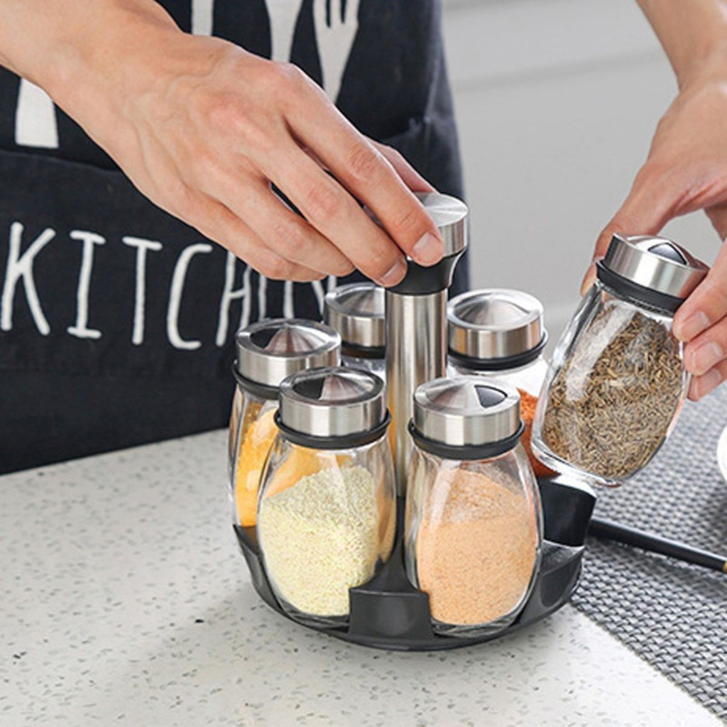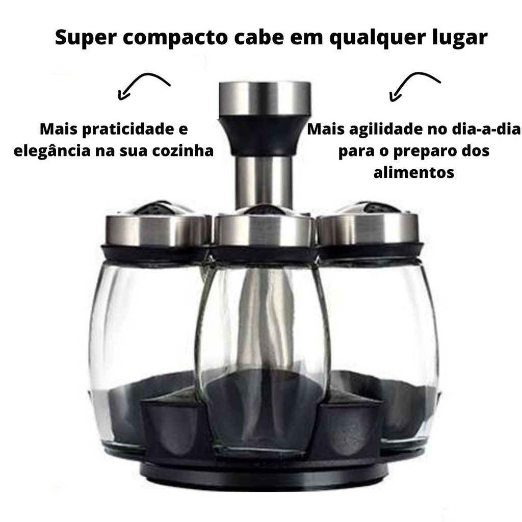 Porta Tempero Condimentos Giratório Inox 06 potes Organizador Moderno Cozinha