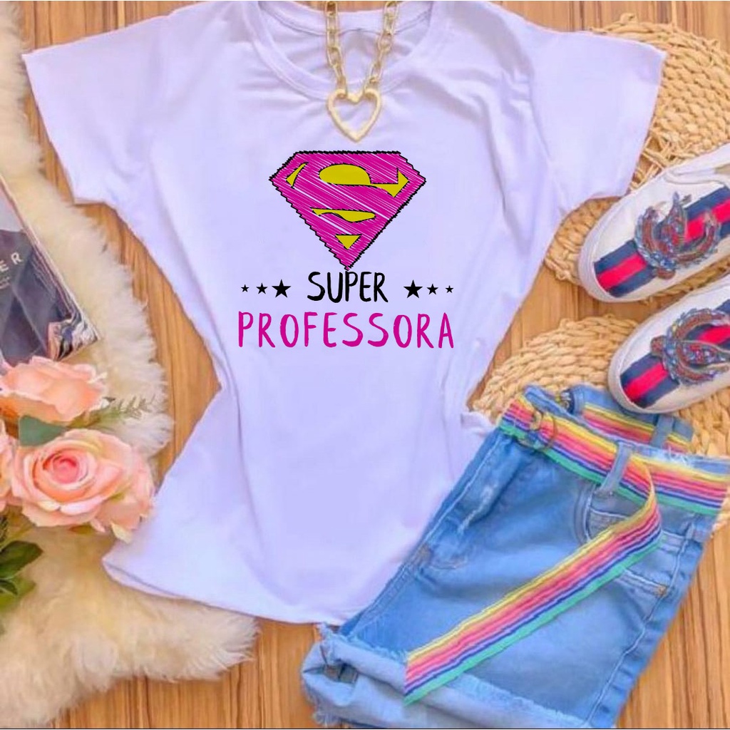 Camiseta T-shirt Blusa Profissão Super Professora Estampa Basica