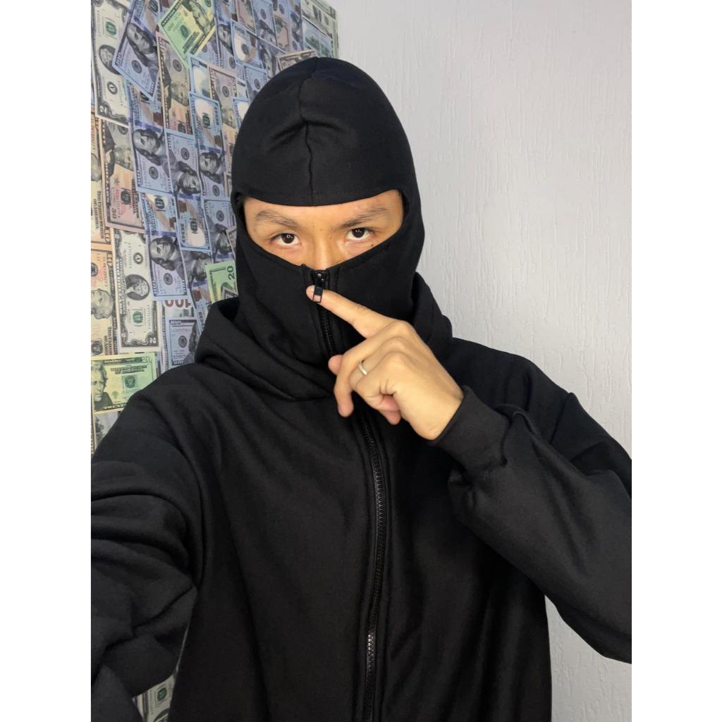 CASACO COM BALACLAVA MOLETOM, DESING, INVERNO, MODA, MASCULINA UNISEX, RAP, NINJA