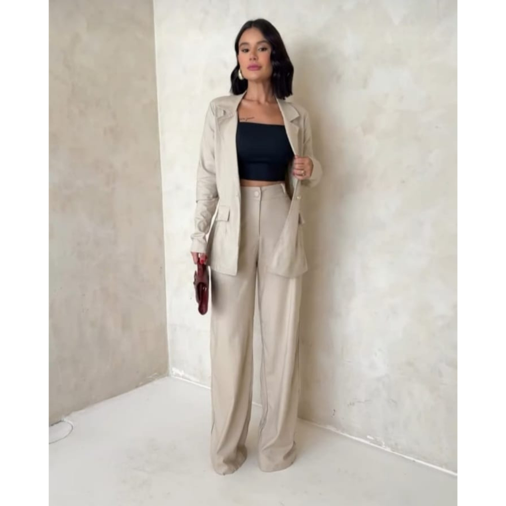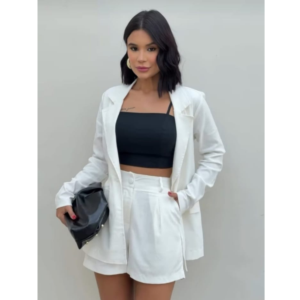 Blazer feminino linho alfaiataria elegante delicado