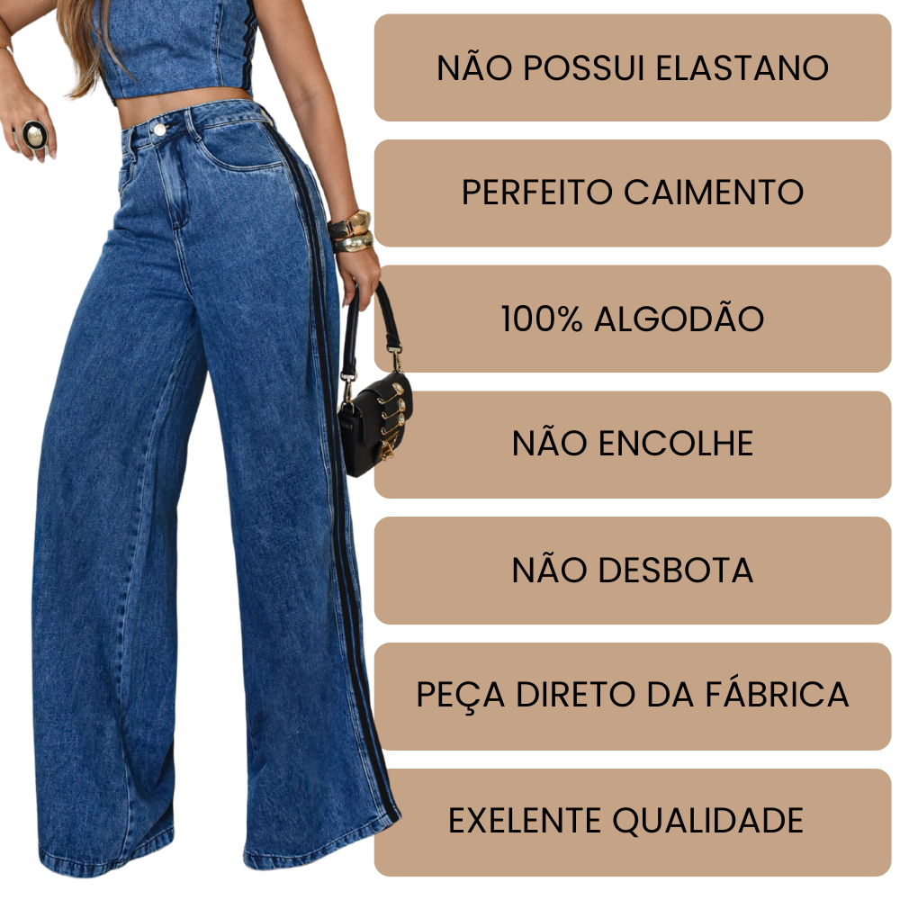 Calça Jeans Feminina Perna Larga Pantalona Wedi Leg Atemporal Boca de Sino Moda Urbana Oferta Promo
