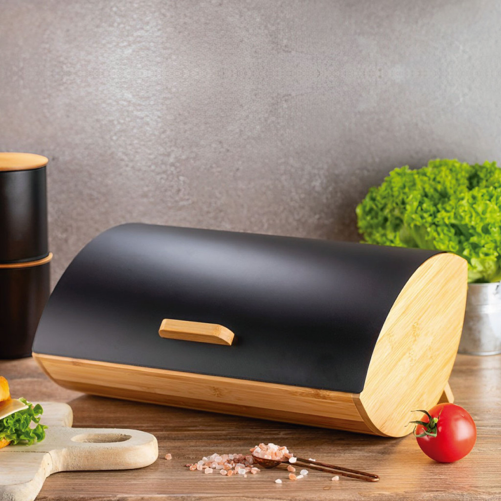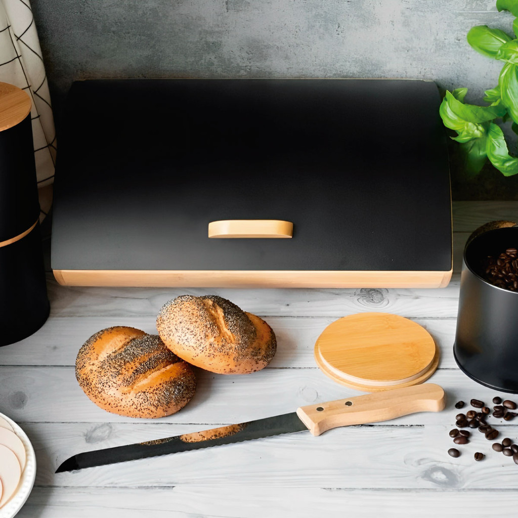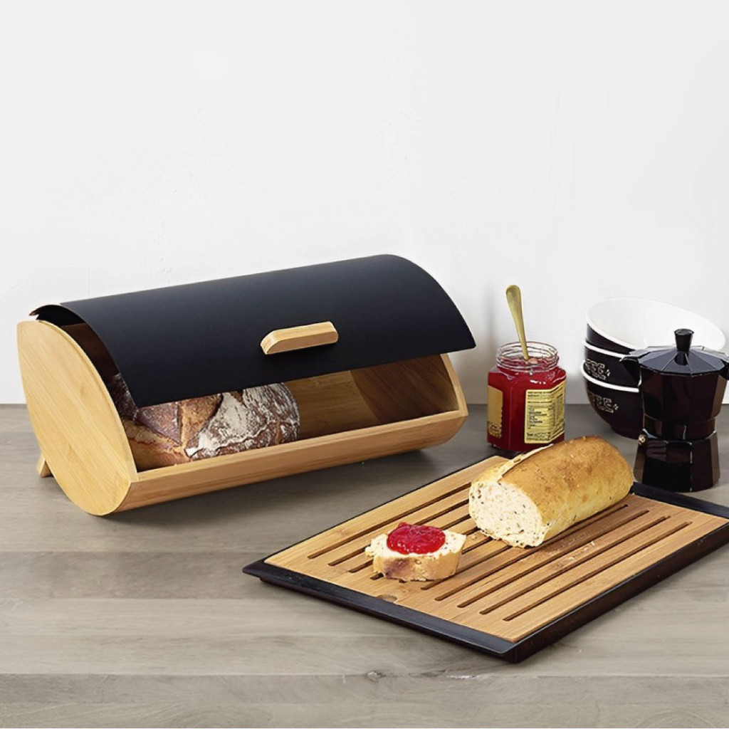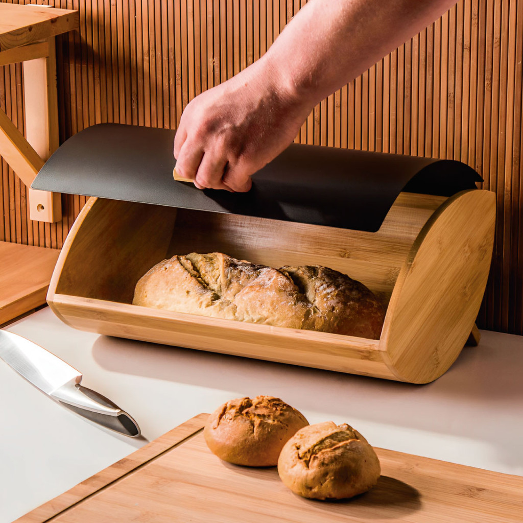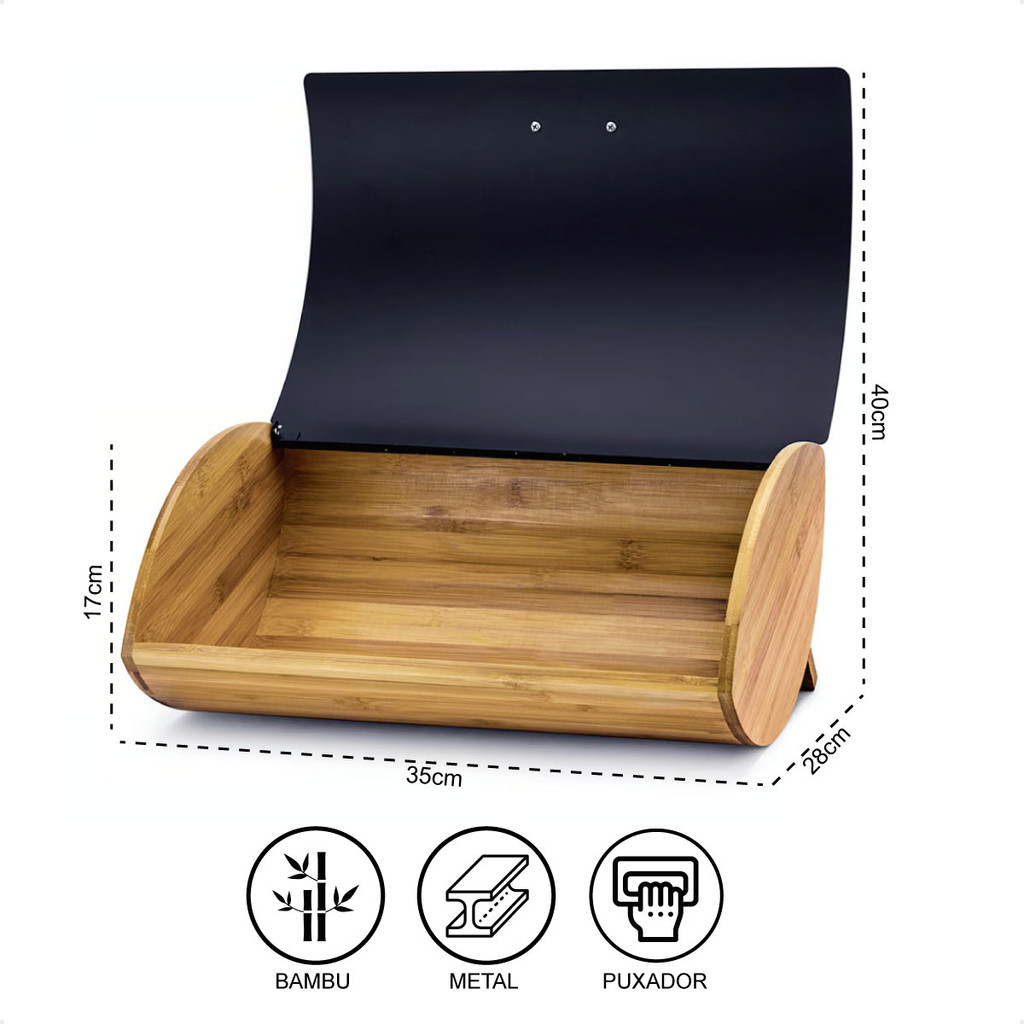 Organizador Porta Pão de Bambu com Tampa de Metal – Ideal para Bolos, Pães e Panetones