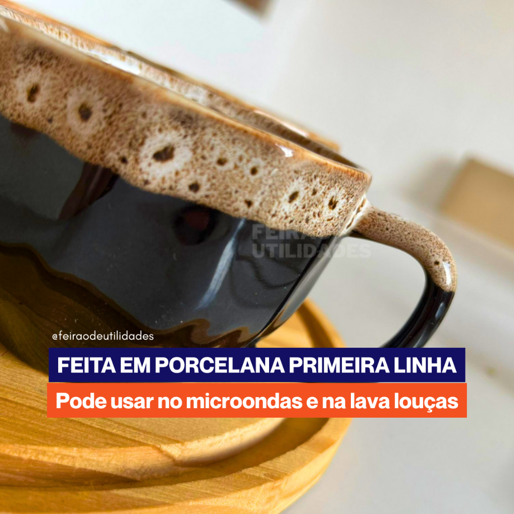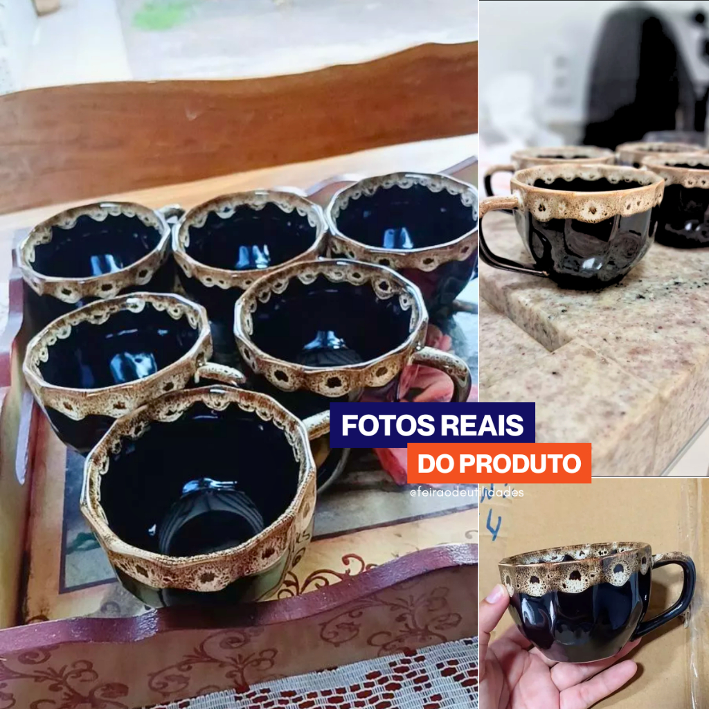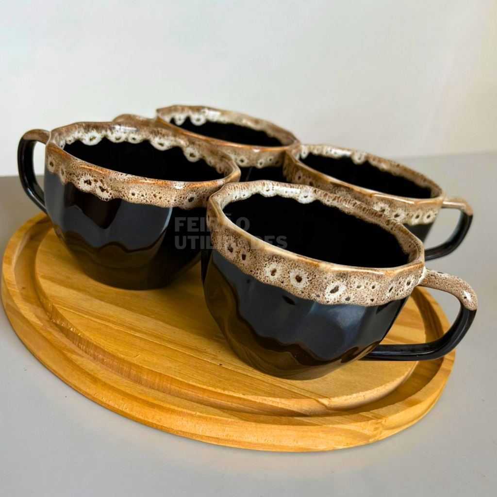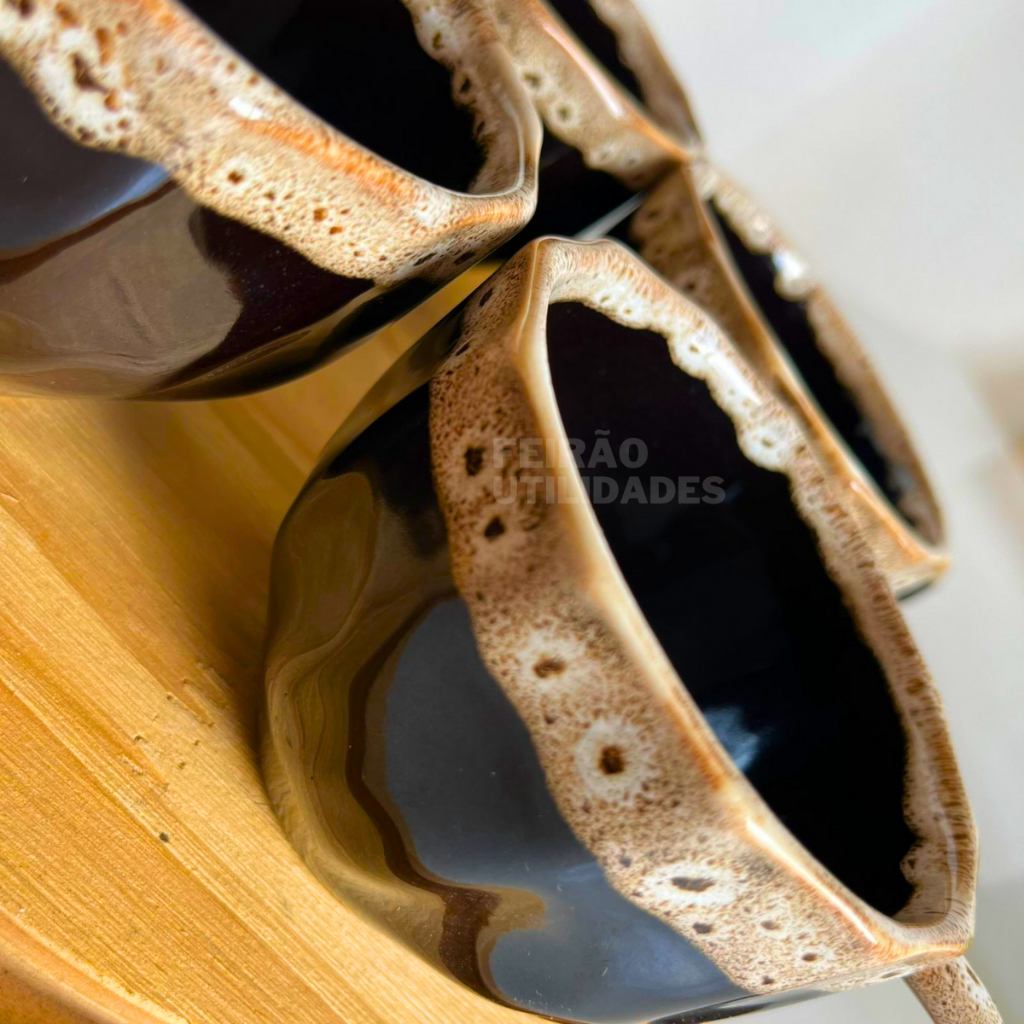 Kit Xícaras de Porcelana Prisma Preta com Borda Personalizada 200ml - Elegância em Cada Gole