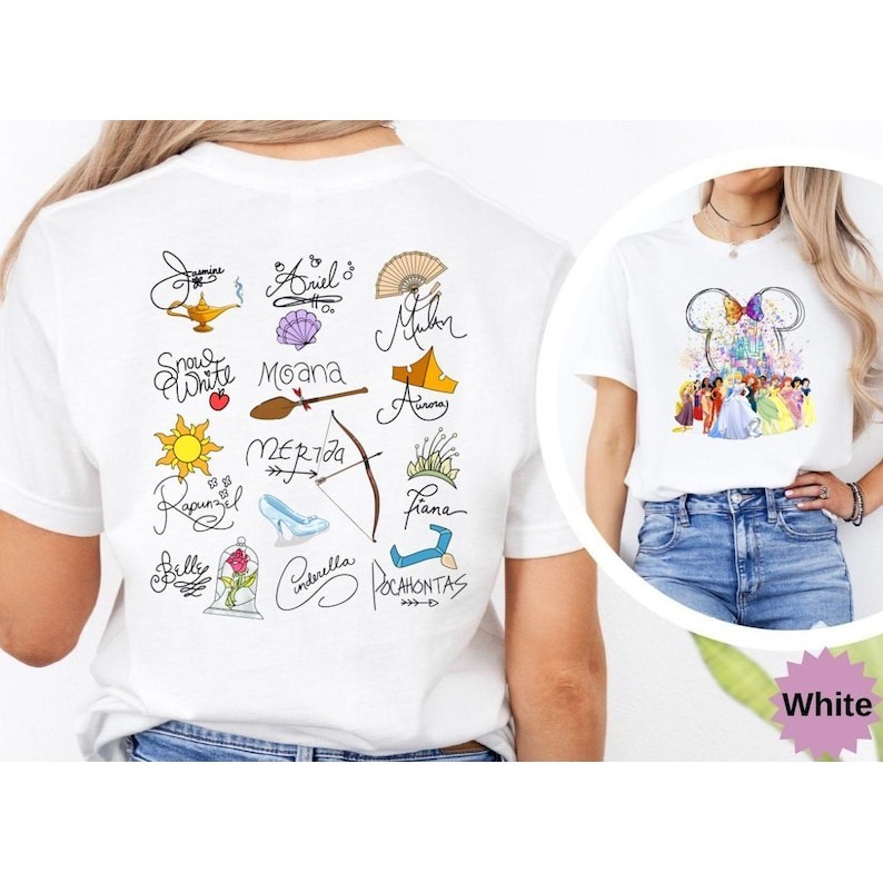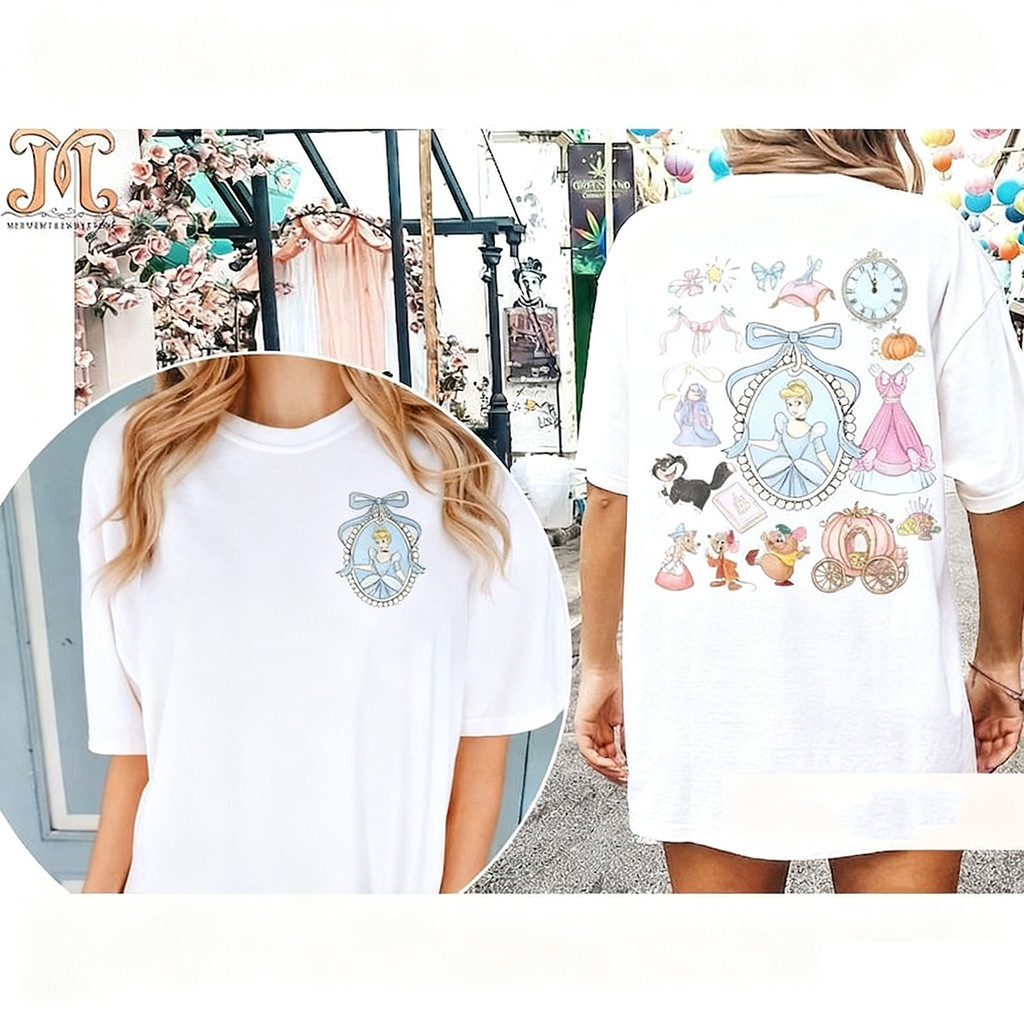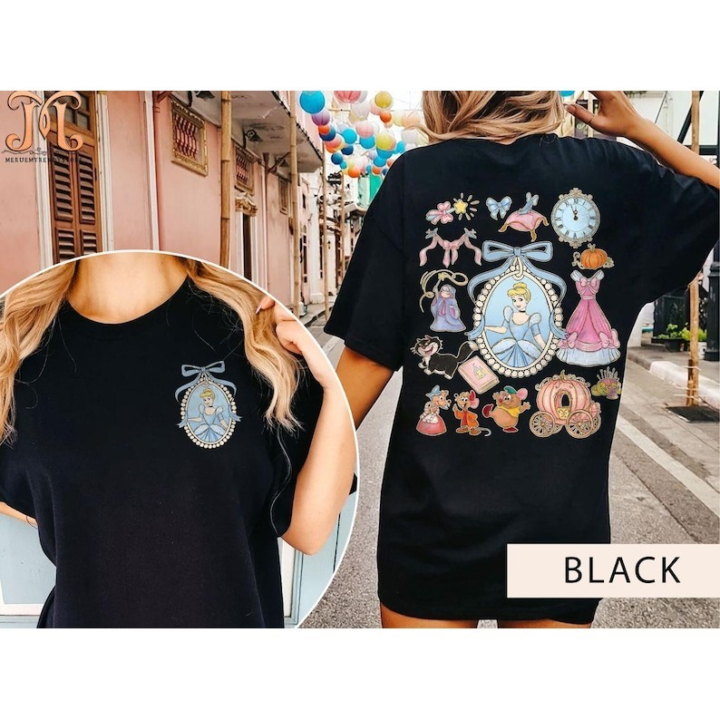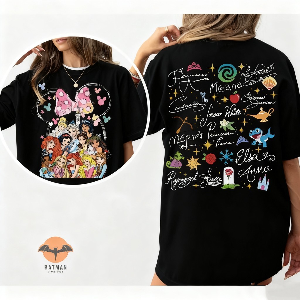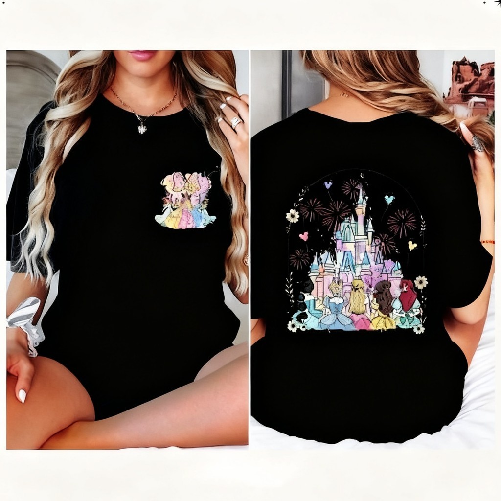 2025 Camiseta Unisex, Print Duplo de Princesas Disney com Elementos Minnie, Moda Urbana Disney