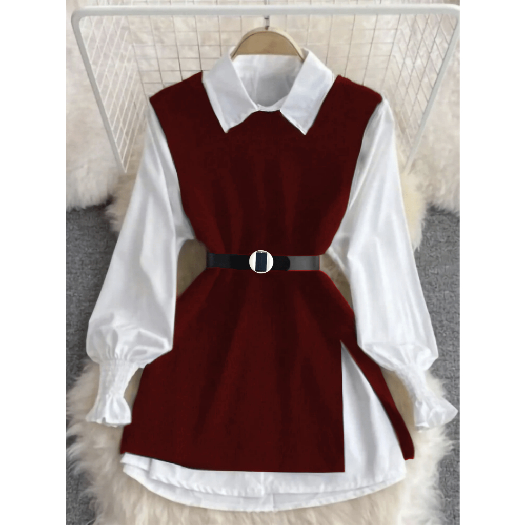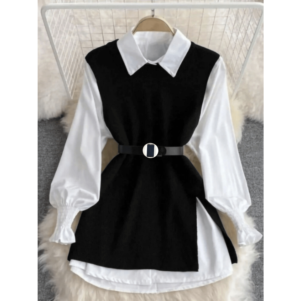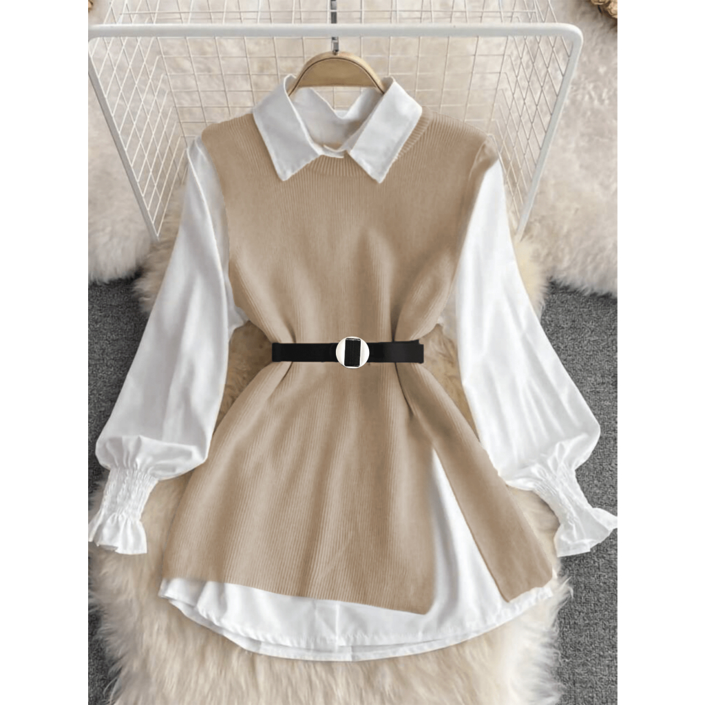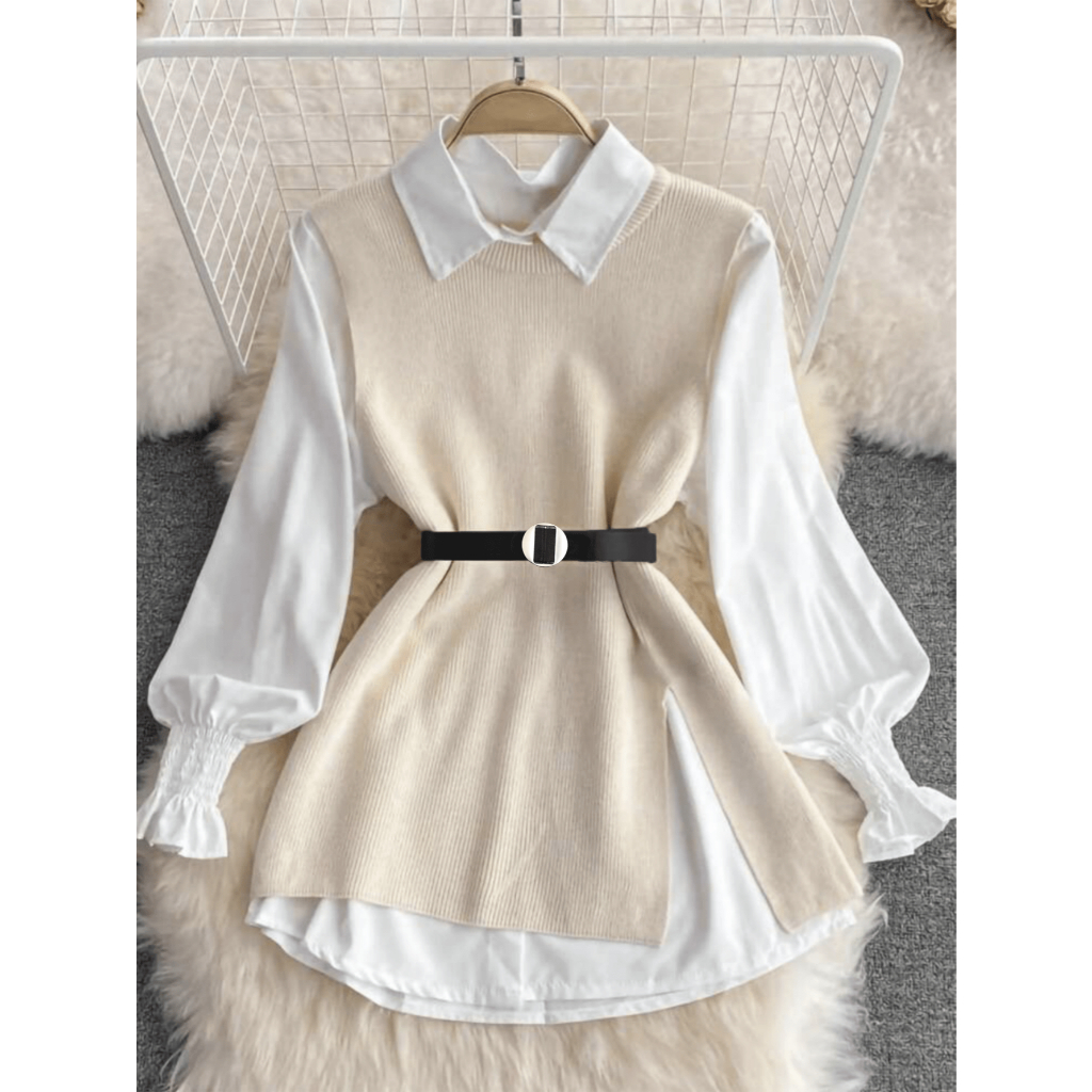 Liuhan Modasfeminina 2 peças/Conjunto Colete Com Manga De Lanterna Branca de Primavera e Colete De Malha De Ajuste Solto