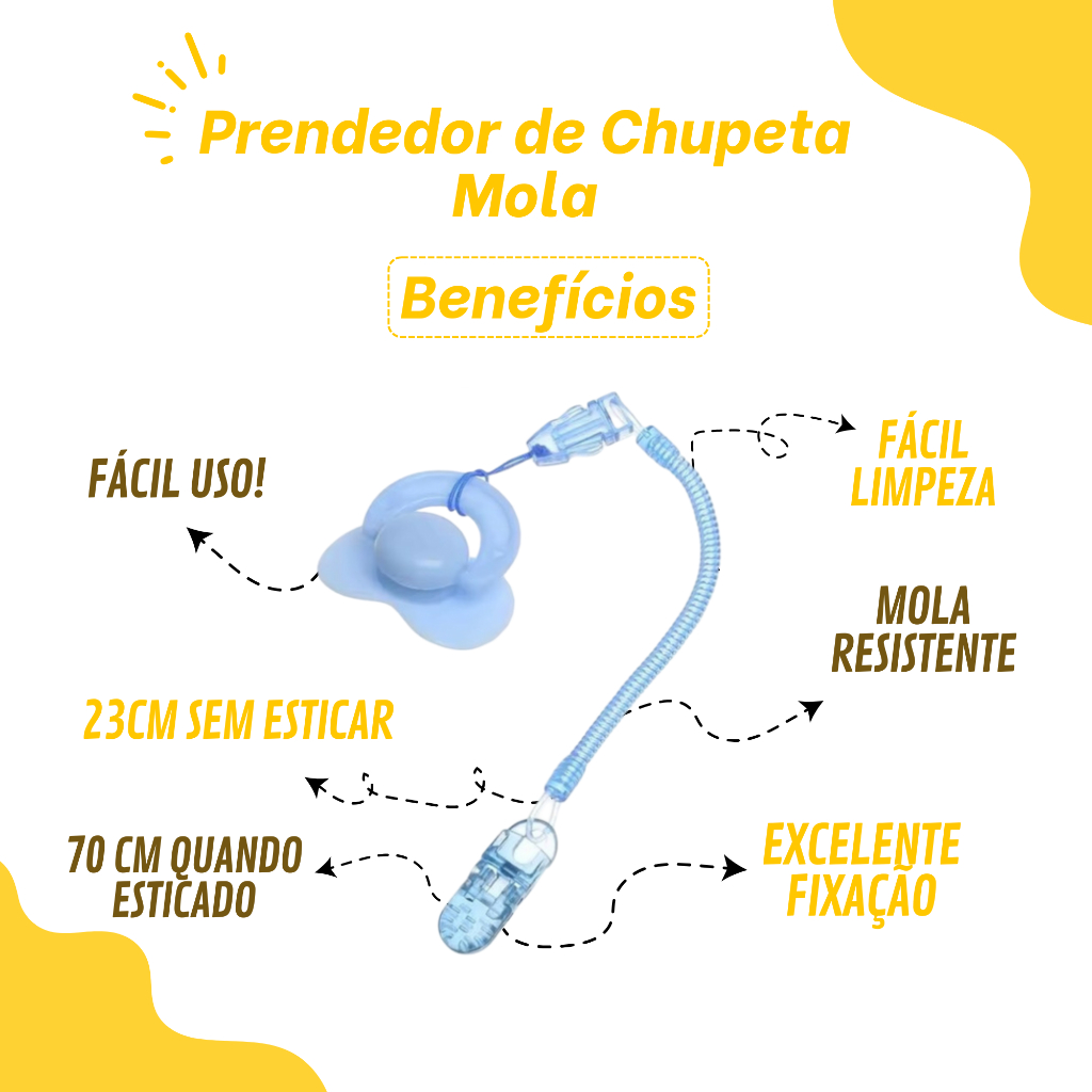 KIT 5 Prendedor de Chupeta Mola P/ Bebê Infantil - Azul ou Rosa
