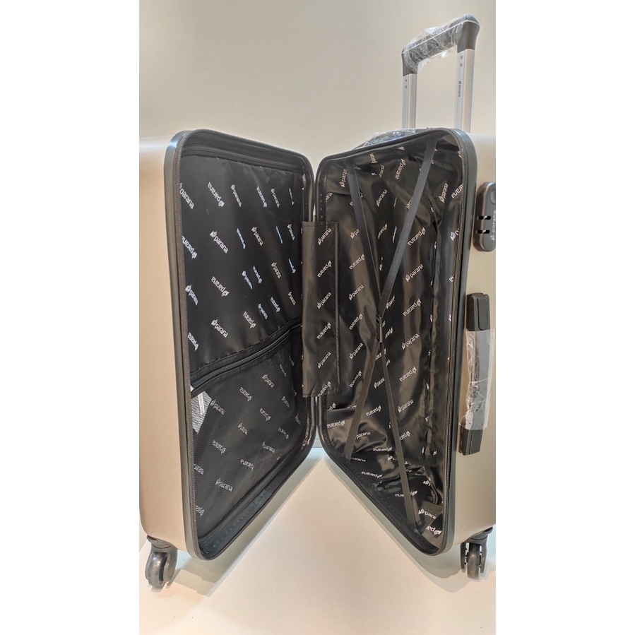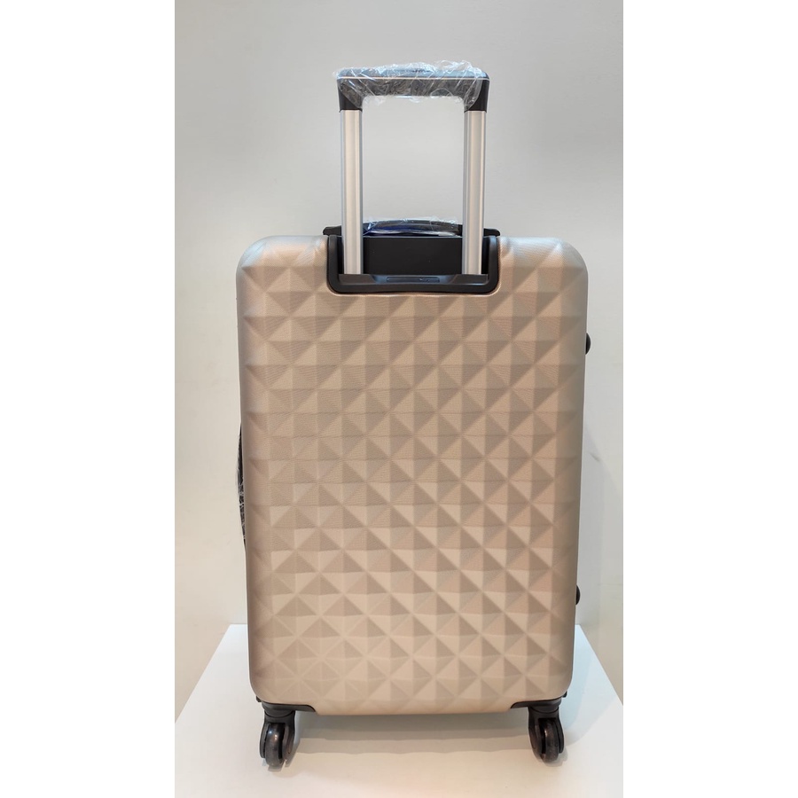 Mala de Viagem Média Champanhe, 23kg para avião, em fibra, de rodinha. Medida: 64x26x42. REF: 121