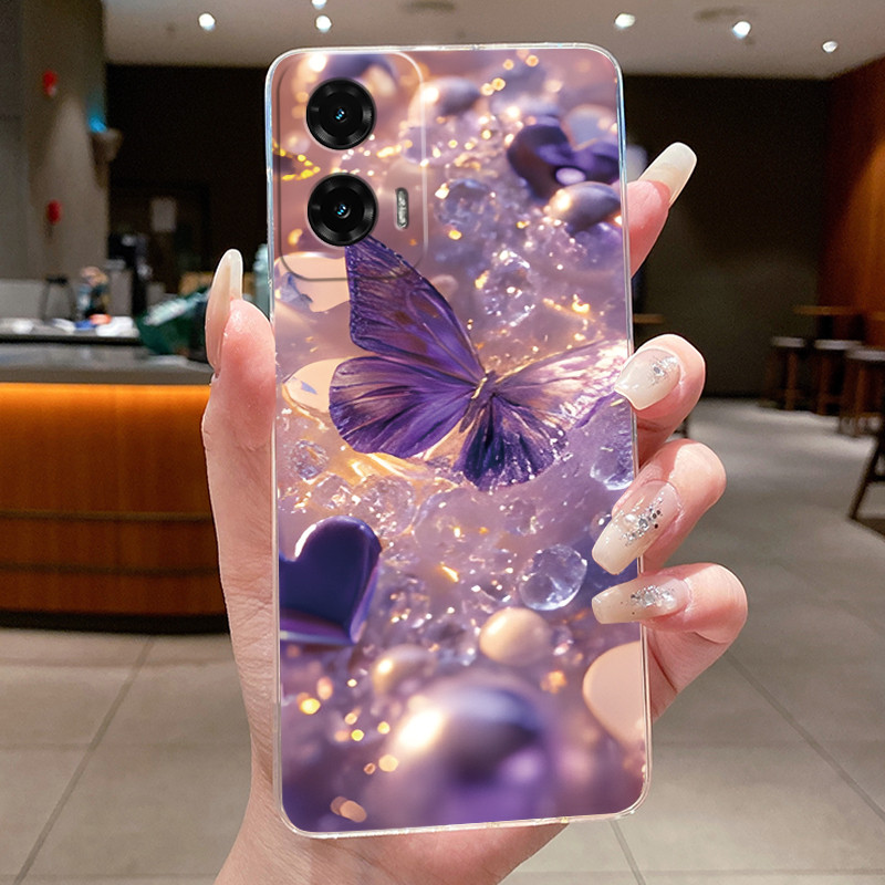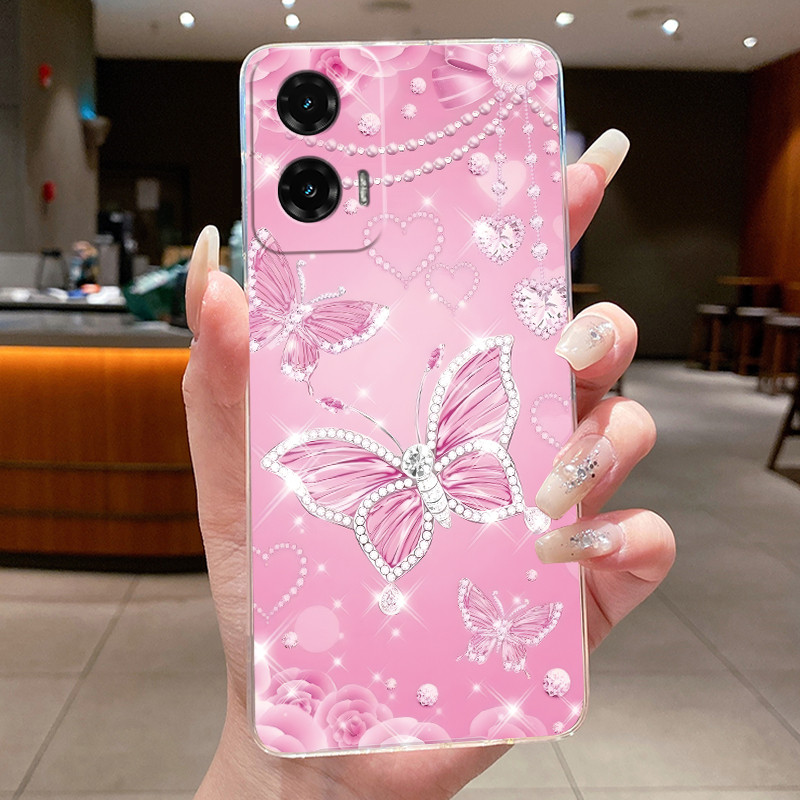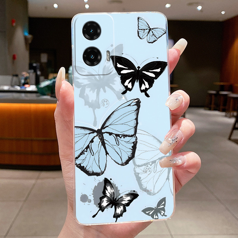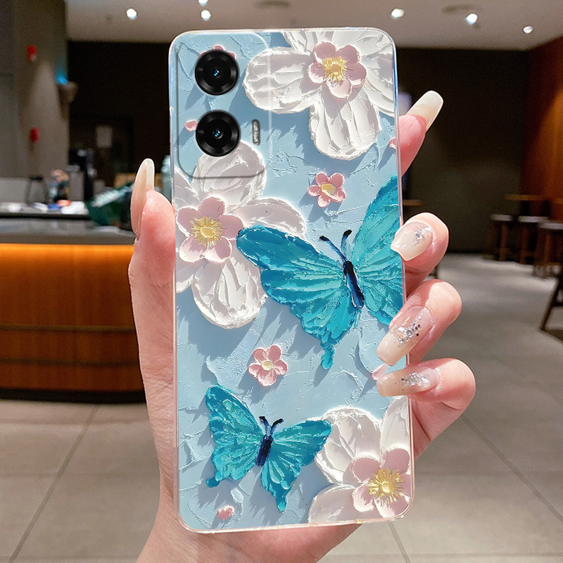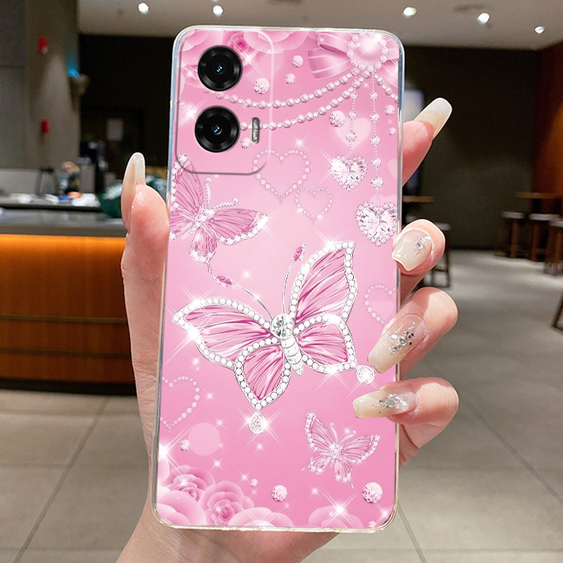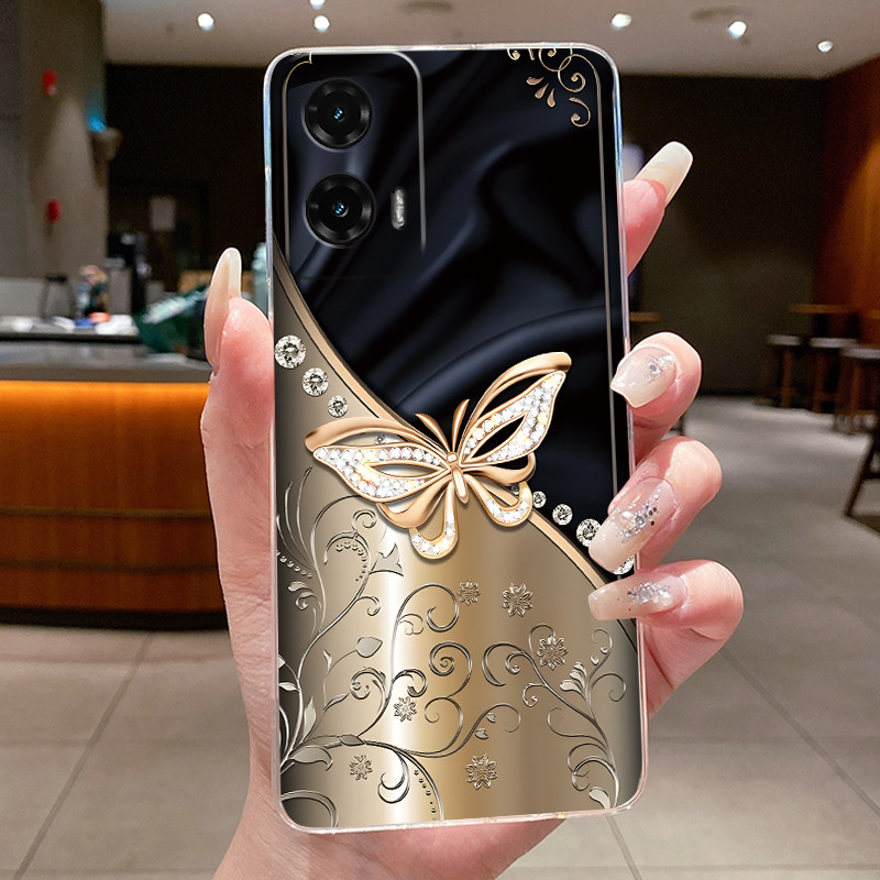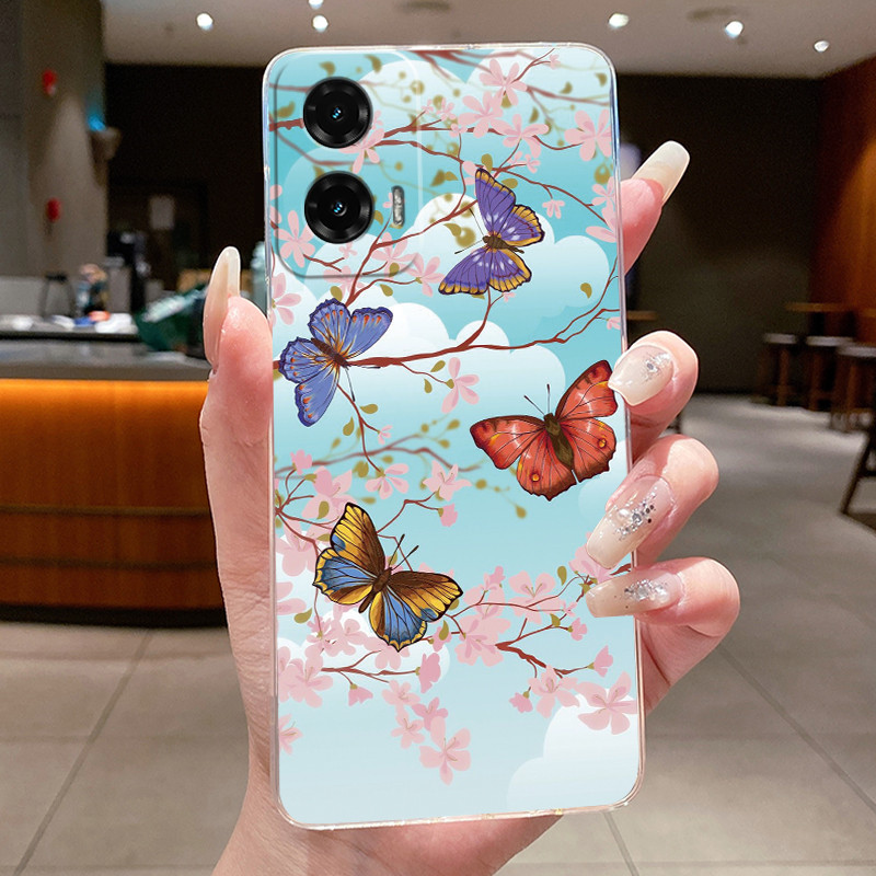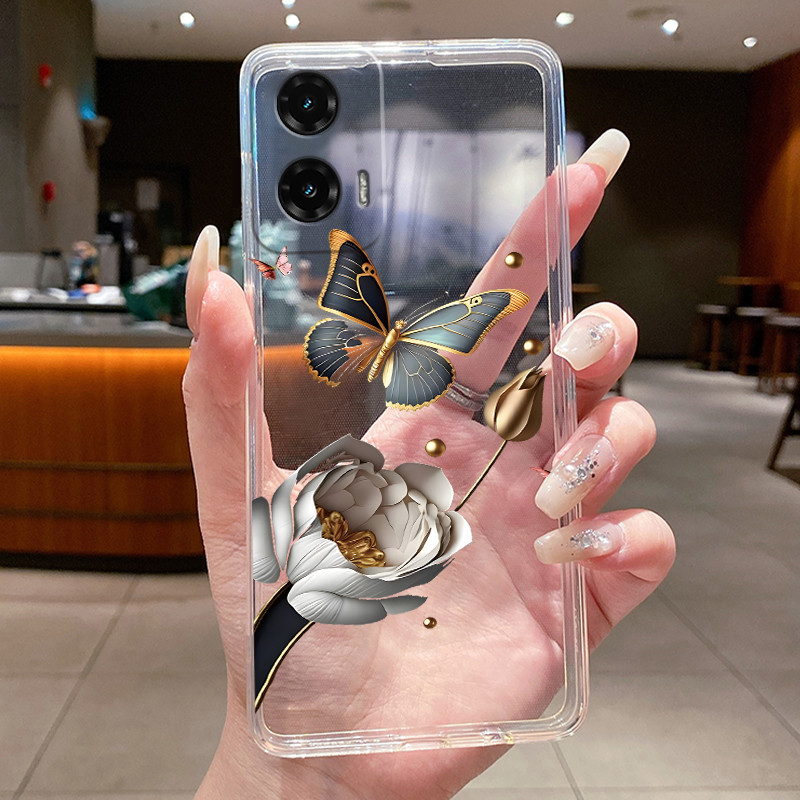 Para Motorola MOTO G35 G55 5G Embalagem Clara Luxo Moda Borboleta Flor Macio TPU Silicone Geléia Capa G 35 55 5G Caso De