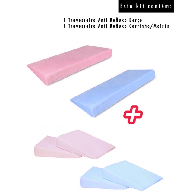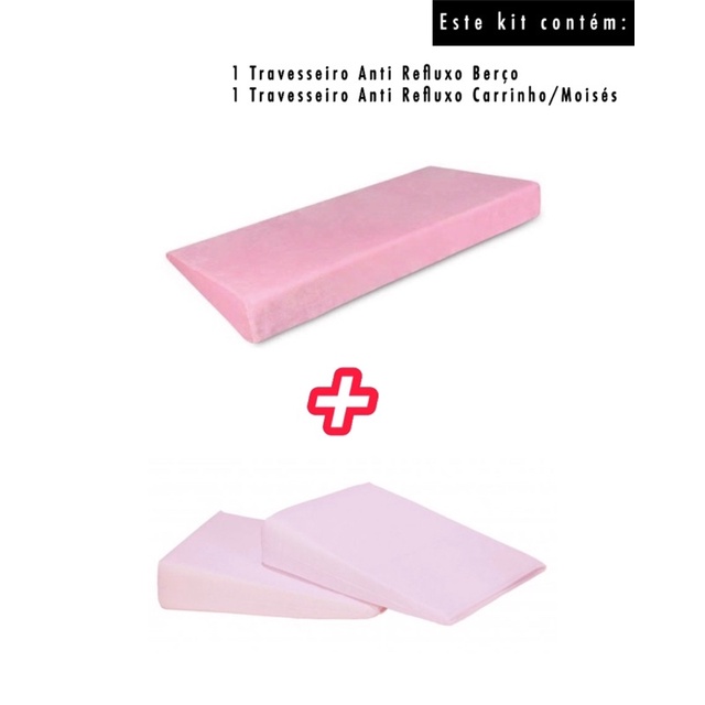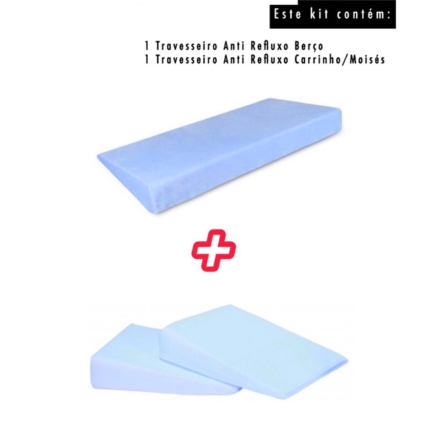 Kit com 2 Travesseiro Anti Refluxo para Carrinho (Moises) + Berço Bebê com Capa Lavável (Enchimento + Capa)