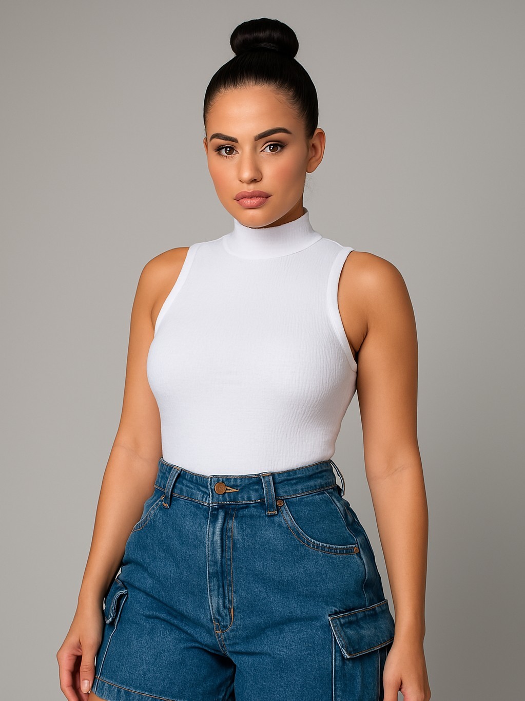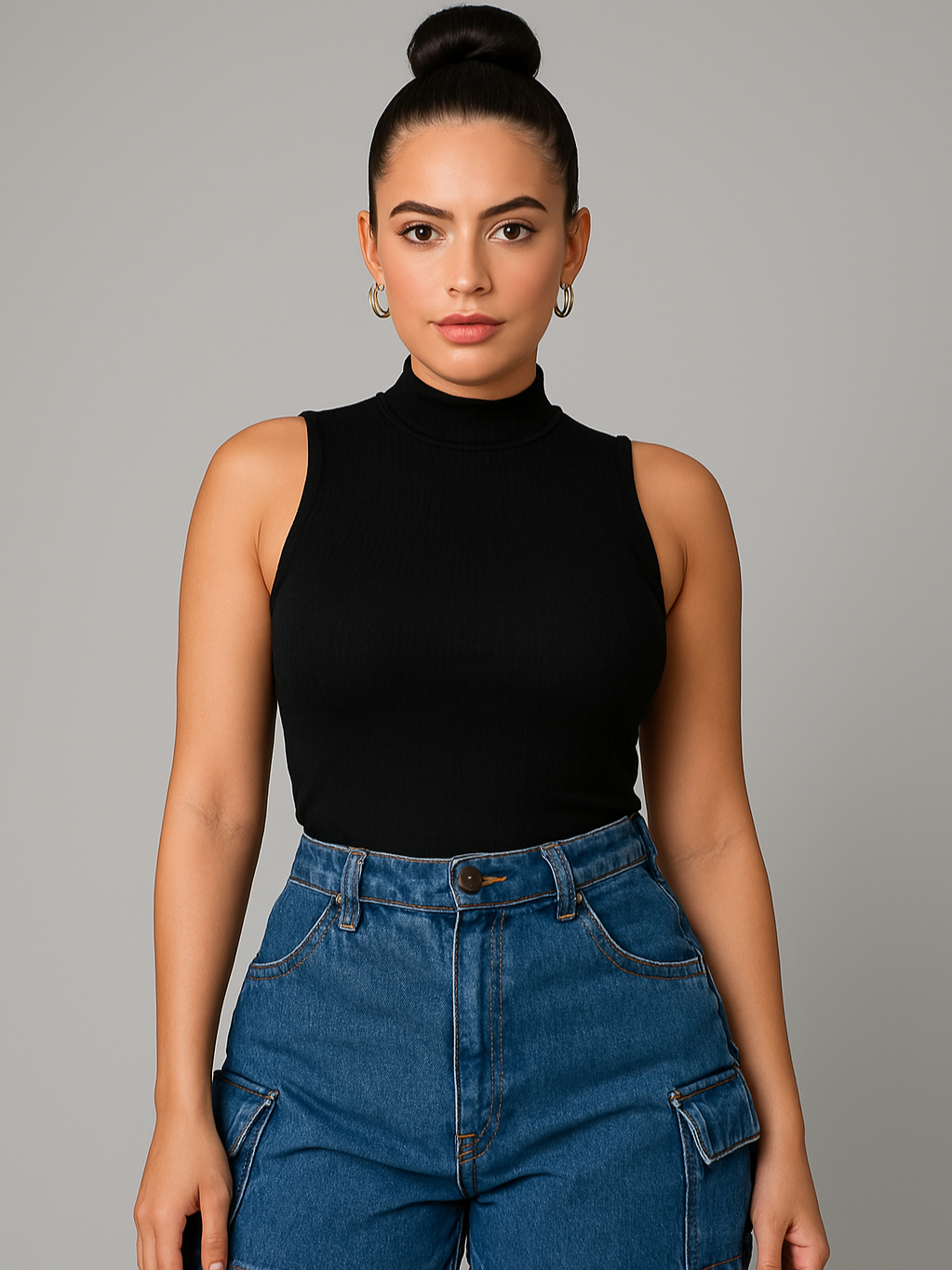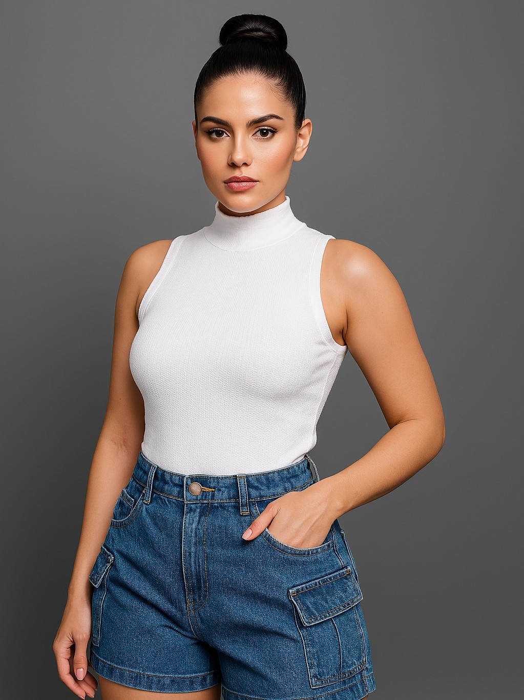Kit com 2 Blusas Femininas Regata Gola Alta Sem Manga – Ribana Canelada