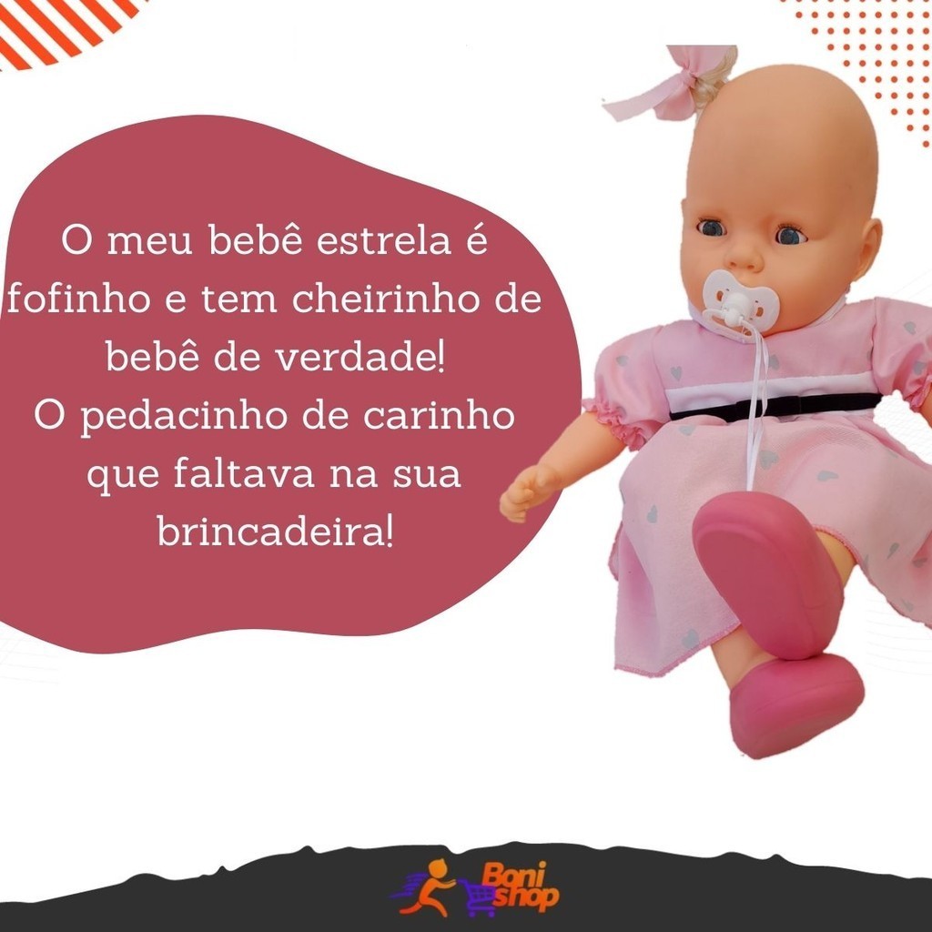 Boneca Meu Bebê Vestido Azul Rosa Bolinha Original Estrela