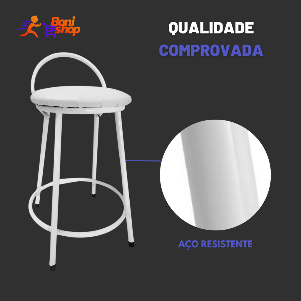Banco Banqueta Redonda Tradicional Com Encosto Clássico Assento de Couro Branco 50cm