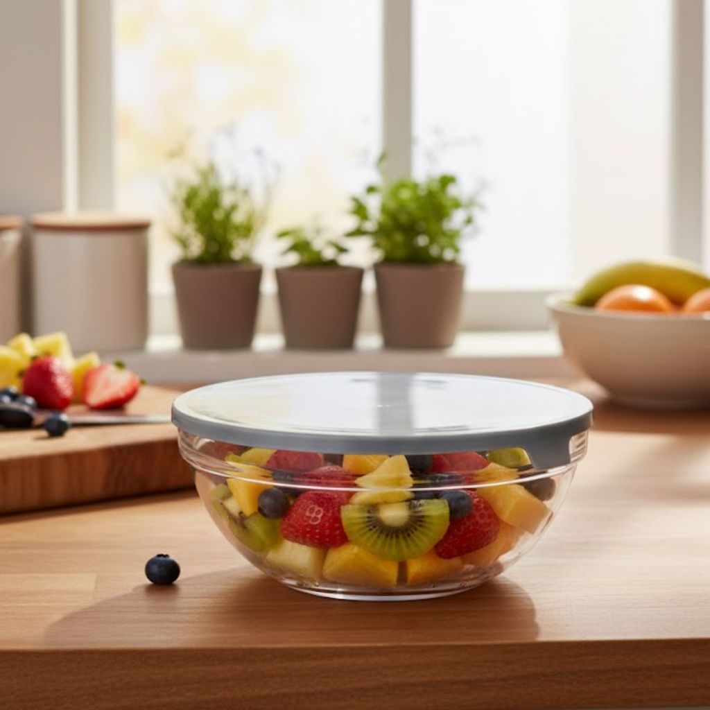 Kit Tigelas Vidro 5 Tamanhos Diferentes Com Tampa Cinza Para Sobremesa Potes de Mantimentos Cozinha